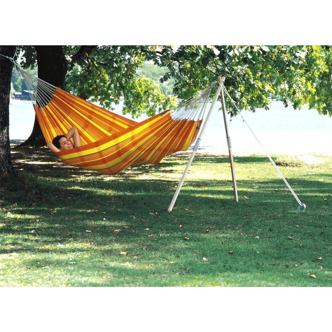 Die XL-Hängematte für das Schaukeln zu zweit oder alleine. In farbenfrohem Design lädt die ‚Barbados‘ zum Entspannen ein.