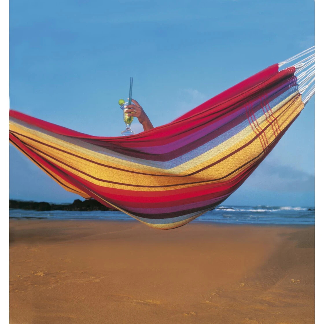 Die XL-Hängematte für das Schaukeln zu zweit oder alleine. In farbenfrohem Design lädt die ‚Barbados‘ zum Entspannen ein.