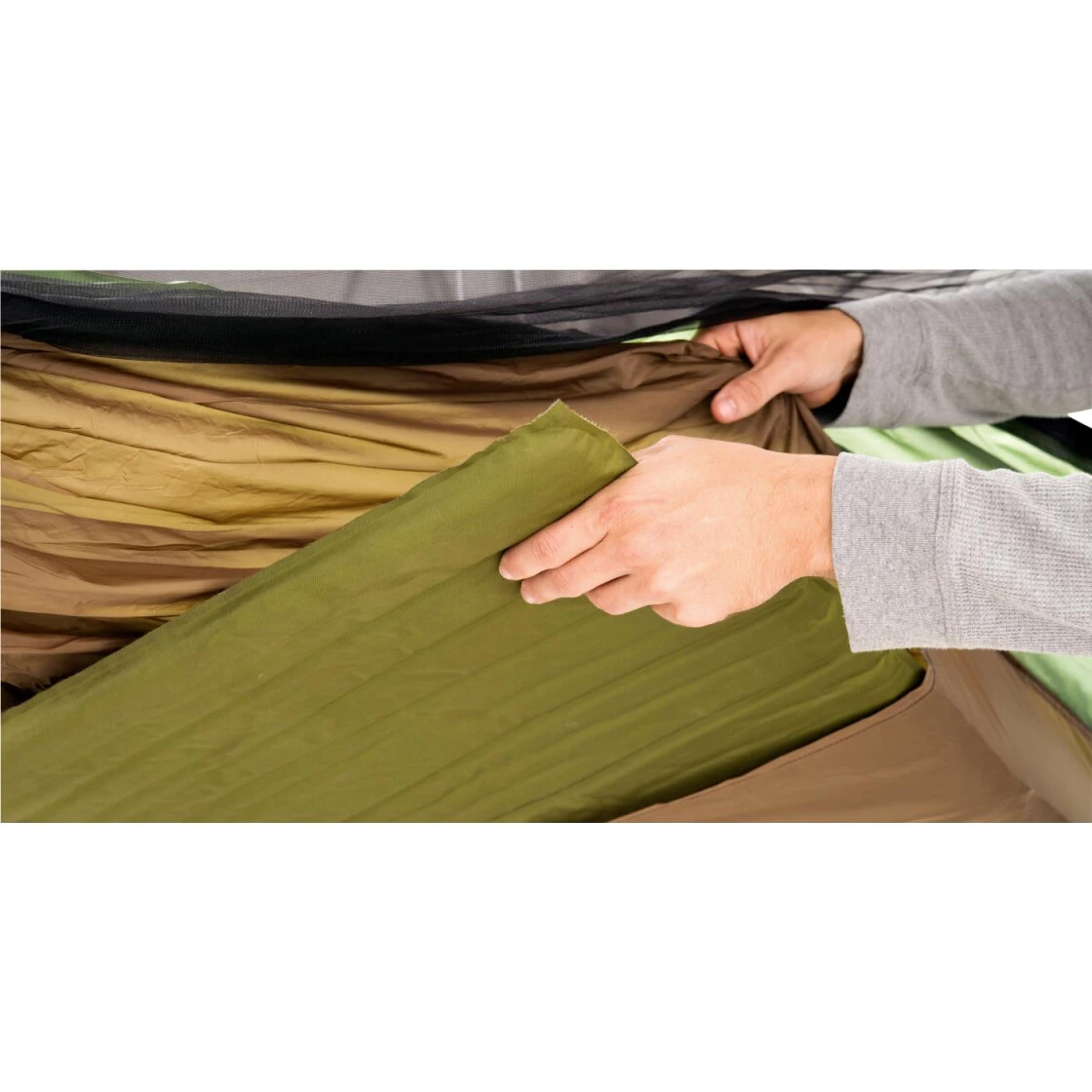 Die ultraleichte Adventure-Hängematte mit Einsteckfach für eine Isomatte und praktischem Moskitonetz. Die Hängematte ist mit einer dauerhaften Tanatex Antiinsektenimprägnierung behandelt (Netz und Stoff). Die Imprägnierung ist bis 50 Waschgänge haltbar, geruchsneutral, hautschonend und unbedenklich für Menschen. So schützt sie gegen Moskitos, Mücken, Zecken, Ameisen usw. Die Hängematte ist beidseitig, also mit und ohne Netz verwendbar. Zur Ausstattung gehören auch der Doppelreißverschluss zum bequemen Einstieg, die patentierten Spreizstäbe für das Netz, das Seil zum Netzabspannen sowie die Abtropfschnürchen (sie lassen das Regenwasser vor der Hängematte abtropfen).