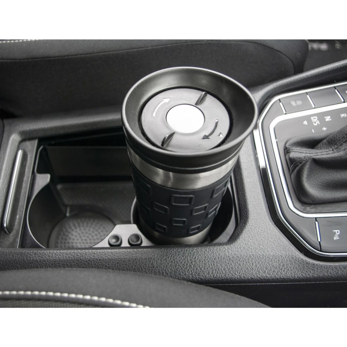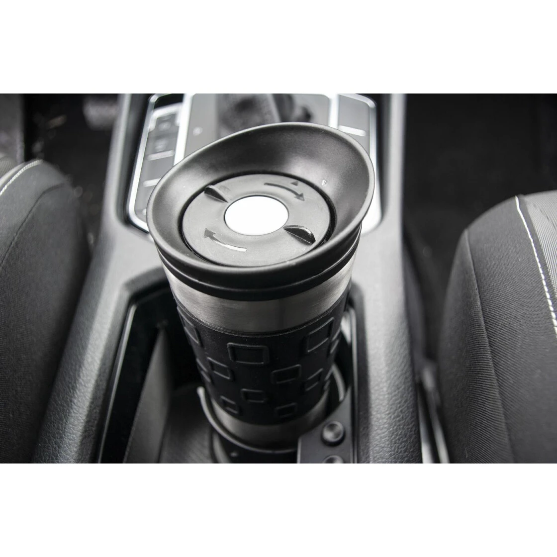 Stylischer Thermobecher aus doppelwandigem Edelstahl. Hält Ihre Getränke lange warm oder auch kalt. Dank der 360° Öffnung können Sie den Becher problemlos mit einer Hand bedienen und wie aus einer Tasse vom Becherrand trinken. Das gummierte Band ermöglicht eine rutschfeste Griffzone. Der Druckknopfverschluss ist in zwei Teile zerlegbar und kann somit problemlos gereinigt werden. Zudem ist der Thermobecher spülmaschinenfest und 100 % dicht. Geeignet für unterwegs, im Auto, beim Wandern, zu Hause oder in der Arbeit.