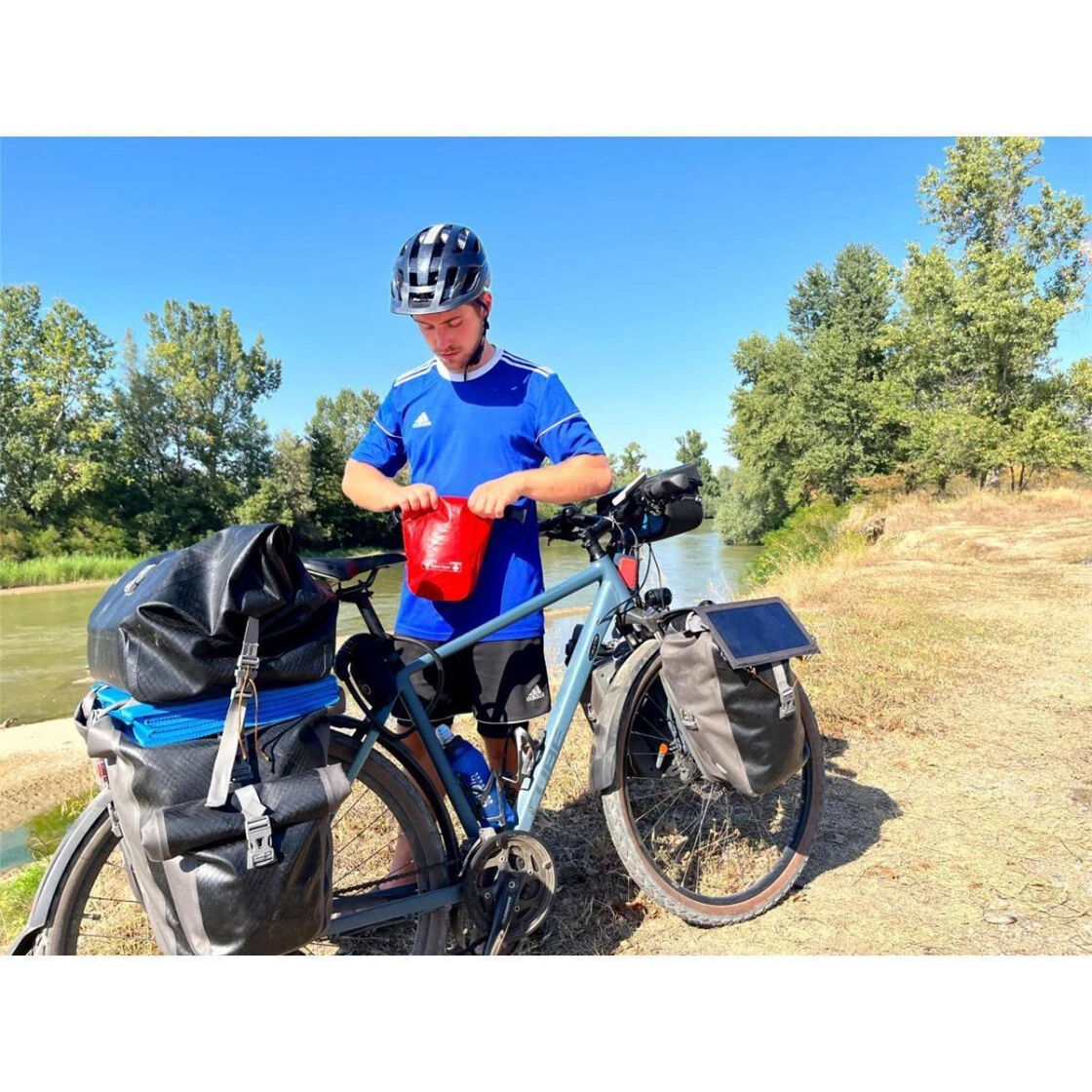 Das kompakte und leichte 2-fach Solar-Panel bietet eine autarke Lademöglichkeit für akkubetriebene Geräte mit USB Anschluss wie Smartphones, Tablets und Powerbanks. Die hochwertigen und effizienten monokristalline Siliziumzellen erzielen einen hohen Wirkungsgrad und liefern konstanten Strom bei gutem Sonnenlicht. Das kompakte und leichte Design macht die Handhabung und den Transport denkbar einfach. Aufklappen und das Panel möglichst senkrecht zur Sonne ausrichten. Ausgestattet mit Befestigungskarabiner und Befestigungsschlaufen zur Anbringung an z. B. Rucksack, Zelt oder sonstigen Haltepunkten. Das flache Design aus widerstandsfähigen Oxford Nylon Gewebe ist extrem robust, staub- und wasserabweisend. Die Innentasche ermöglicht zusätzlich flache und kleine Gegenstände zu verstauen.