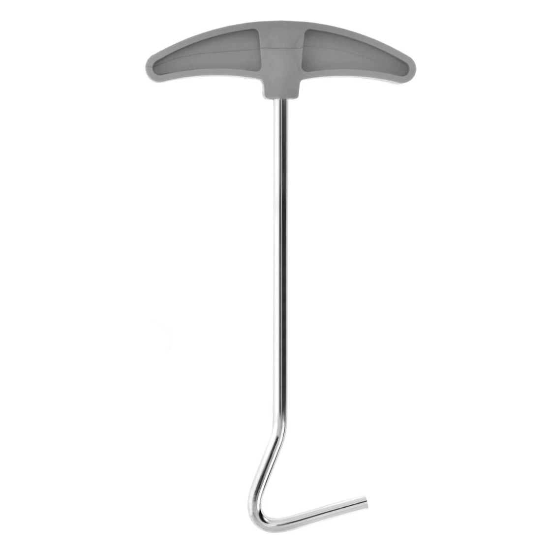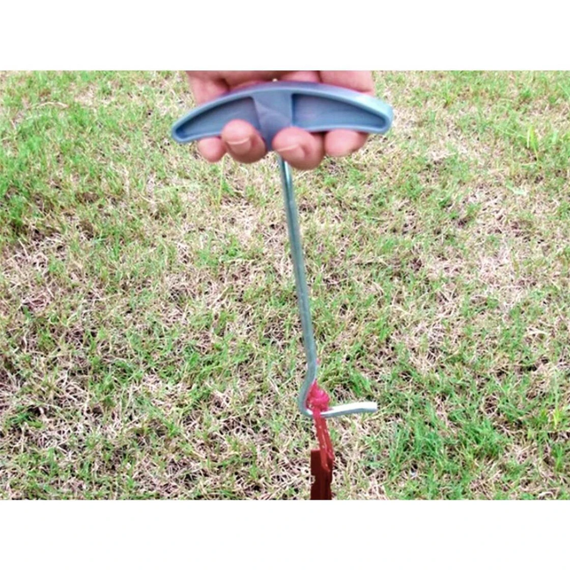 Praktischer Heringzieher um Zelthaken, Heringe, Erdnägel oder Erdanker aus dem Boden zu entfernen. Gefertigt aus Stahl mit ergonomischem Haltegriff.