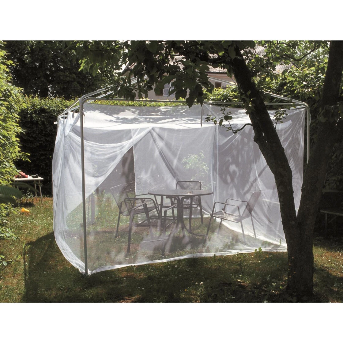 Das Größte: Dieses Netz passt über eine komplette Sitzgruppe und eignet sich perfekt, um z. B. den Sitzplatz auf der Terrasse zur insektenfreien Zone zu machen. Aber auch für den Sandkasten oder den Picknickplatz. Das Netz hat eine Eingangsöffnung und viele Befestigungsbänder. Es kann damit nach oben abgehängt werden.