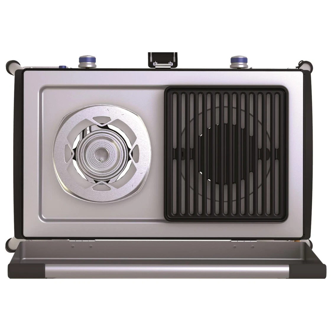 Schöner, gut ausgestatteter Zweiflammkocher mit der neuen, innovativen Xcelerate-Technologie. Hierbei wird eine wesentlich optimiertere Hitze erzeugt. Dies wird durch das Treppenstufendesign des Brenners erreicht sowie durch den eingebauten WindBlock. So wird einströmende Luft sofort nach außen geleitet. Dieser Kocher hat eine Piezozündung eingebaut. Die Brenner sind auch hier separat und fein regelbar. Der stabile Deckel mit integriertem verchromtem Tragegriff sowie die aufstellbaren Windschutzbleche gehören zum Lieferumfang dieses gut gearbeiteten Kochers. Alle abnehmbaren Teile sind spülmaschinengeeignet.