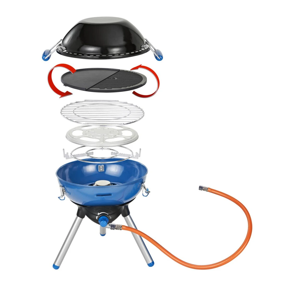 Eine multifunktionale Alternative zu traditionellen Kochern und das mit sehr kompakten Maßen. Der Wechsel vom Grill zum Kocher ist schnell bewerkstelligt. Mit Topfkreuz, antihaftbeschichtetem Grillrost und Transportdeckel ausgestattet. Die integrierte Piezozündung ermöglicht einfaches Zünden.