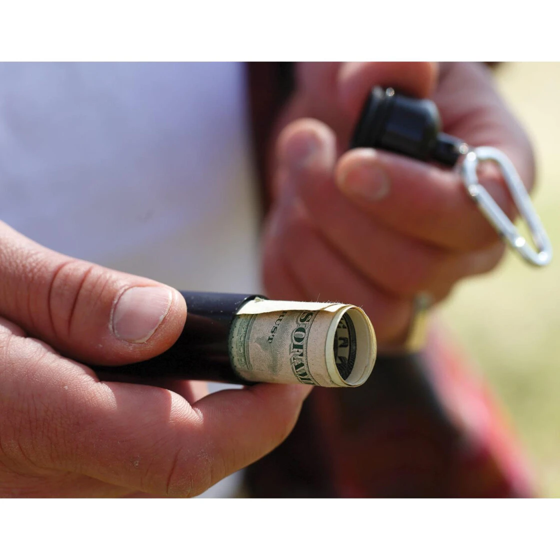 Diese Aluminiumkapseln sind fast überall nützlich. Ein praktischer Karabiner ermöglicht es, die Kapsel sofort und sicher an Gürtel oder Rucksack zu befestigen. Ein O-Ring aus Gummi sorgt für die Abdichtung und macht die Kapseln ideal für alles, was trocken gehalten werden muss. Von Geld über Reparatursets bis hin zu Erste-Hilfe-Kits finden diese Kapseln bei jedem Ausflug eine sinnvolle Aufgabe.