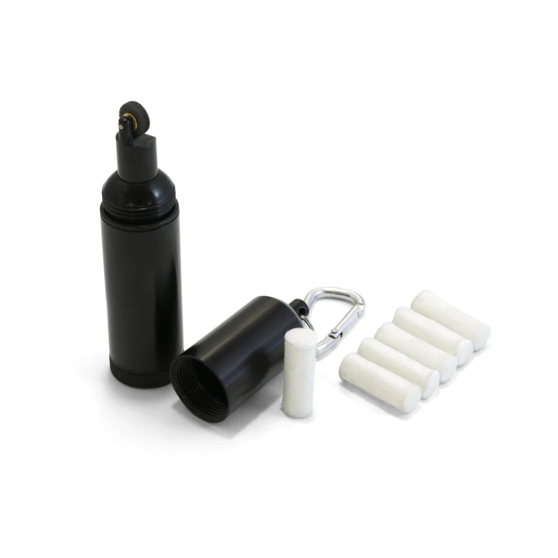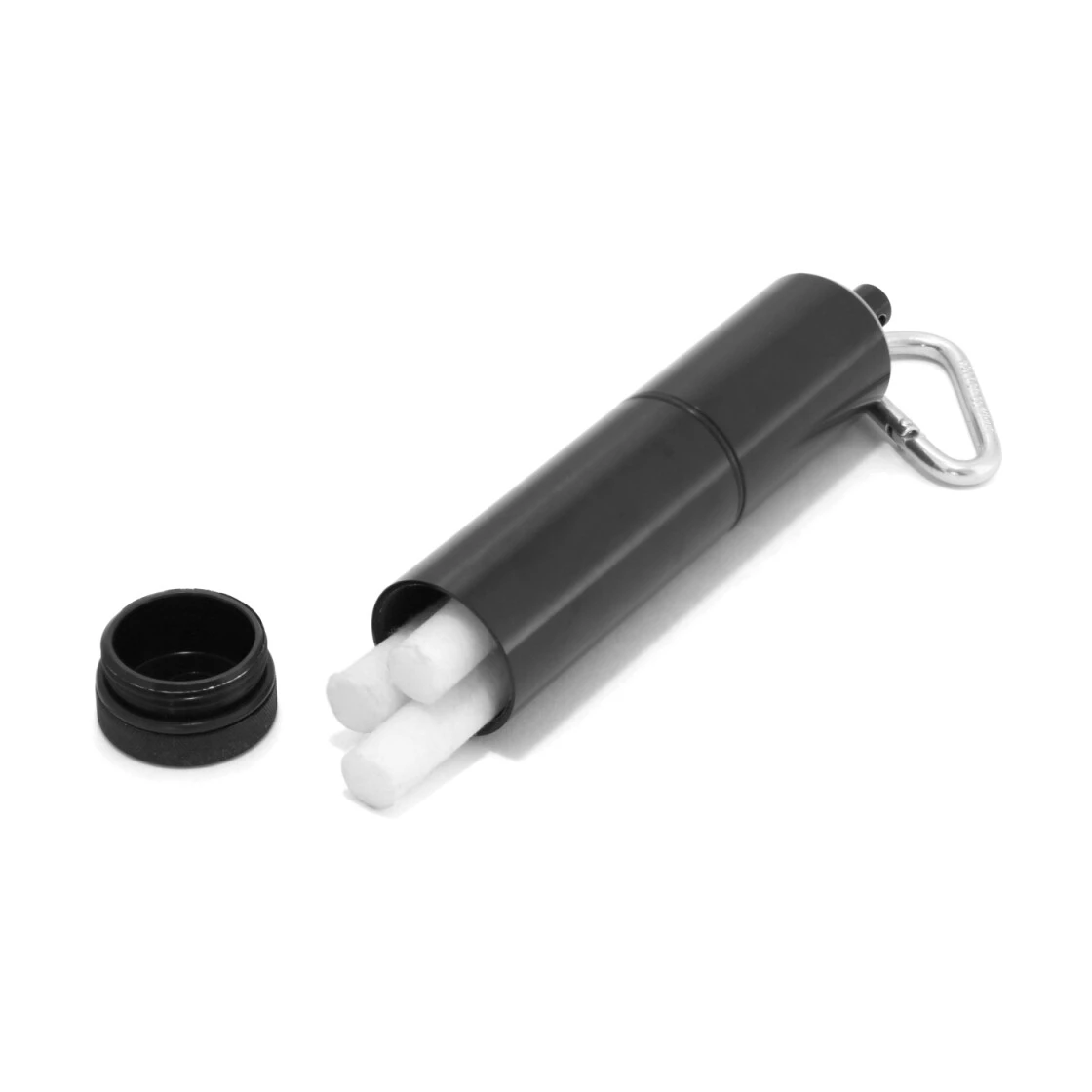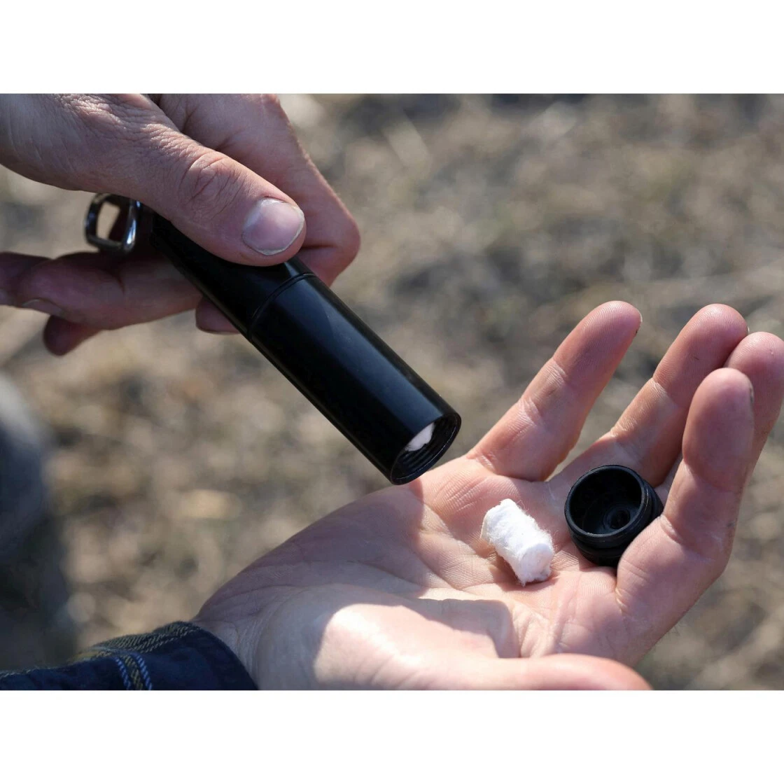 Der leicht zu bedienende Feuerstarter macht es sehr einfach, ein Feuer zu entfachen. Das Feuersteinrad erzeugt Funken zum Anzünden von Zunder (6 Stück Zunder sind enthalten). Die Kapsel schützt das Feuersteinrad vor den Elementen. Der Stauraum im unteren Ende nimmt den Zunder oder andere Verbrauchsmaterialien auf. Der mitgelieferte Karabiner befestigt das Feuersteinrad am Rucksack oder an der Jacke um es sofort zur Hand zu haben.