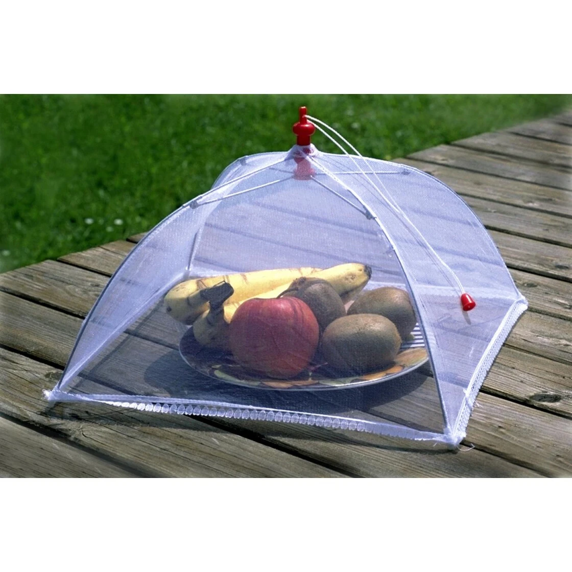 Die Haube aus Nylonmoskitotüll schützt Ihre Speisen vor aufdringlichem Insektenvolk. Einfach über die Speisen stellen. Zum Transport klein zusammenlegbar.