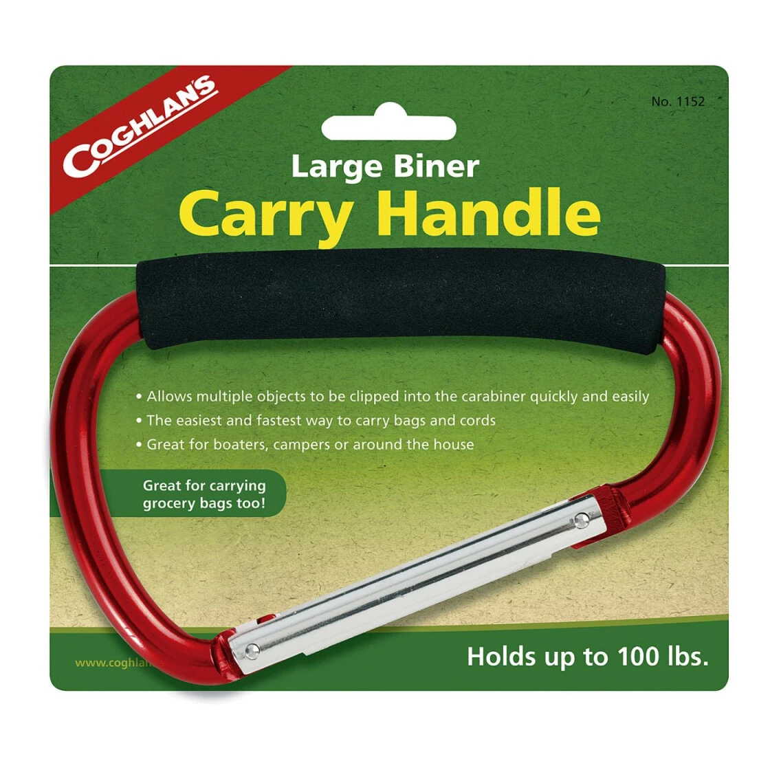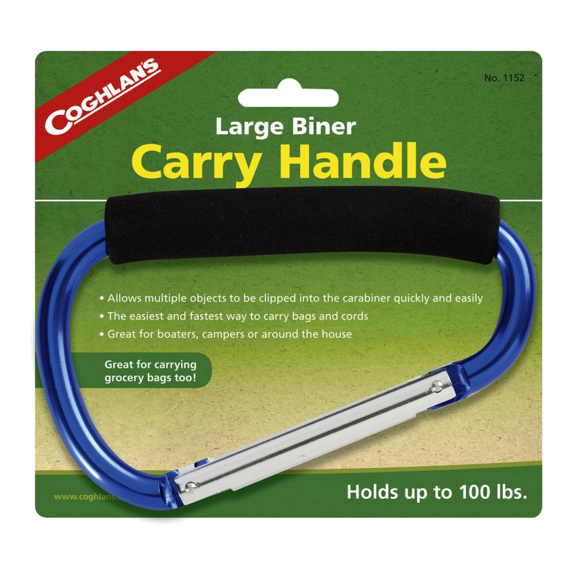 Großer Zubehörkarabiner mit riesigem Einsatzspektrum. Der gepolsterte Griff macht ihn zur ersten Wahl als vielfältiger Tragegriff für Kanus, Einkaufsnetze, schwere Rucksäcke usw. Ebenso ideal zum Sortieren von Ausrüstung, als Handgriff für Hundeleinen, zum Zusammenfassen von Tüten, etc. Hergestellt aus robustem Flugzeugaluminium mit einer Öffnung von 7,5 cm.