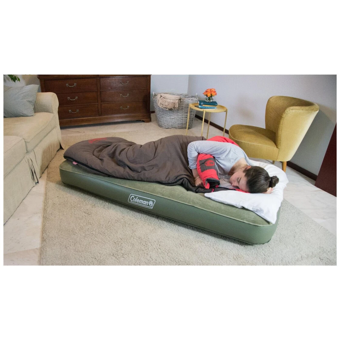 Coleman bietet mit den Comfort-Betten ein sehr komfortables und strapazierfähiges Luftbett an. Passend für alle Familienzelte, als Gästebett, Reisebett, den Garten, etc. Die Betten verfügen über das ausgeklügelte Airtight System. So sind die Betten garantiert luftdicht sowie leicht und schnell zu befüllen. Ruhe versprechen auch die 2 Luftkammern der Double-Version. Der Partner wird nicht bei jedem Drehen mit bewegt! Mit der Quickpumpe in nur wenigen Minuten einsatzbereit (Single ca. 1 Minute, Double ca. 2 Minuten).