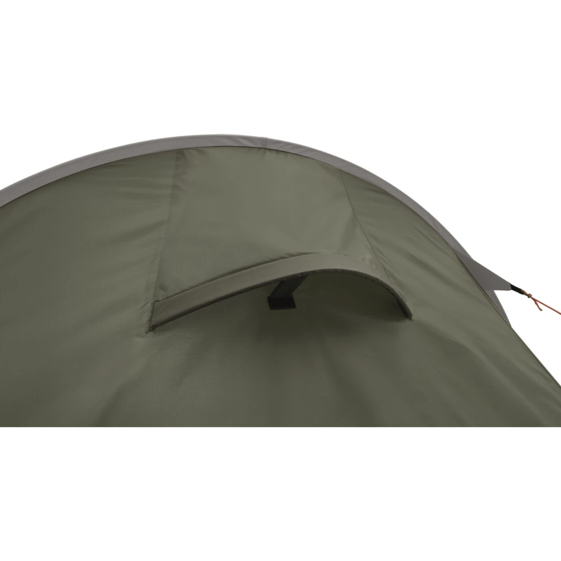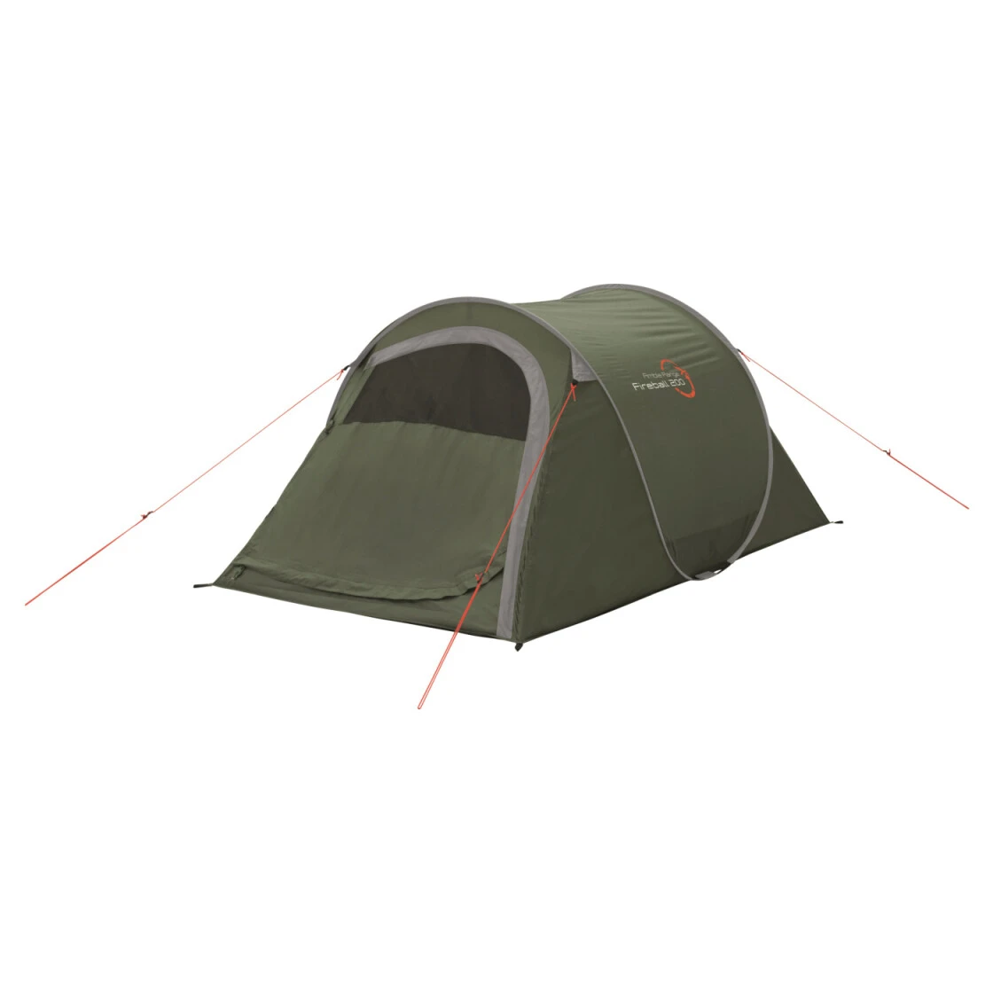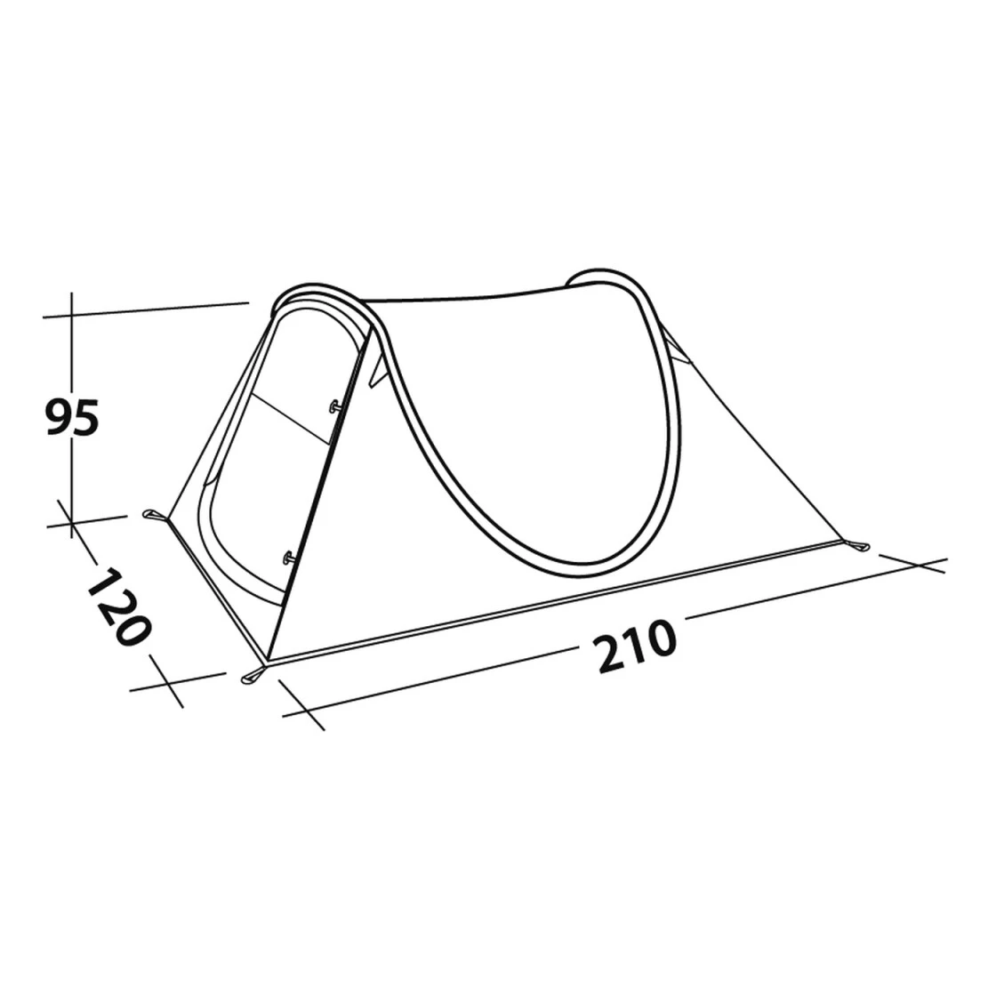 Einfach aufklappen und los geht’s! Sparen Sie Zeit und ersparen Sie sich Stress mit dem superpraktischen Pop-up-Zelt Fireball 200. Öffnen Sie einfach die runde Tragetasche und sehen Sie zu, wie sich das Zelt von selbst aufstellt. So bleibt Ihnen mehr Zeit, um Ihre Wochenendausflüge zu genießen. Das Zelt hat Platz für bis zu zwei Personen, bietet einen hervorragenden Wetterschutz und wird für zusätzliche Stabilität mit Heringen und Abspannleinen geliefert. Eine große Lüftungsöffnung an der Rückseite und ein Einsatz aus Netzstoff im oberen Eingangsbereich sorgen dafür, dass die Luft zirkuliert. So wird es nicht stickig.