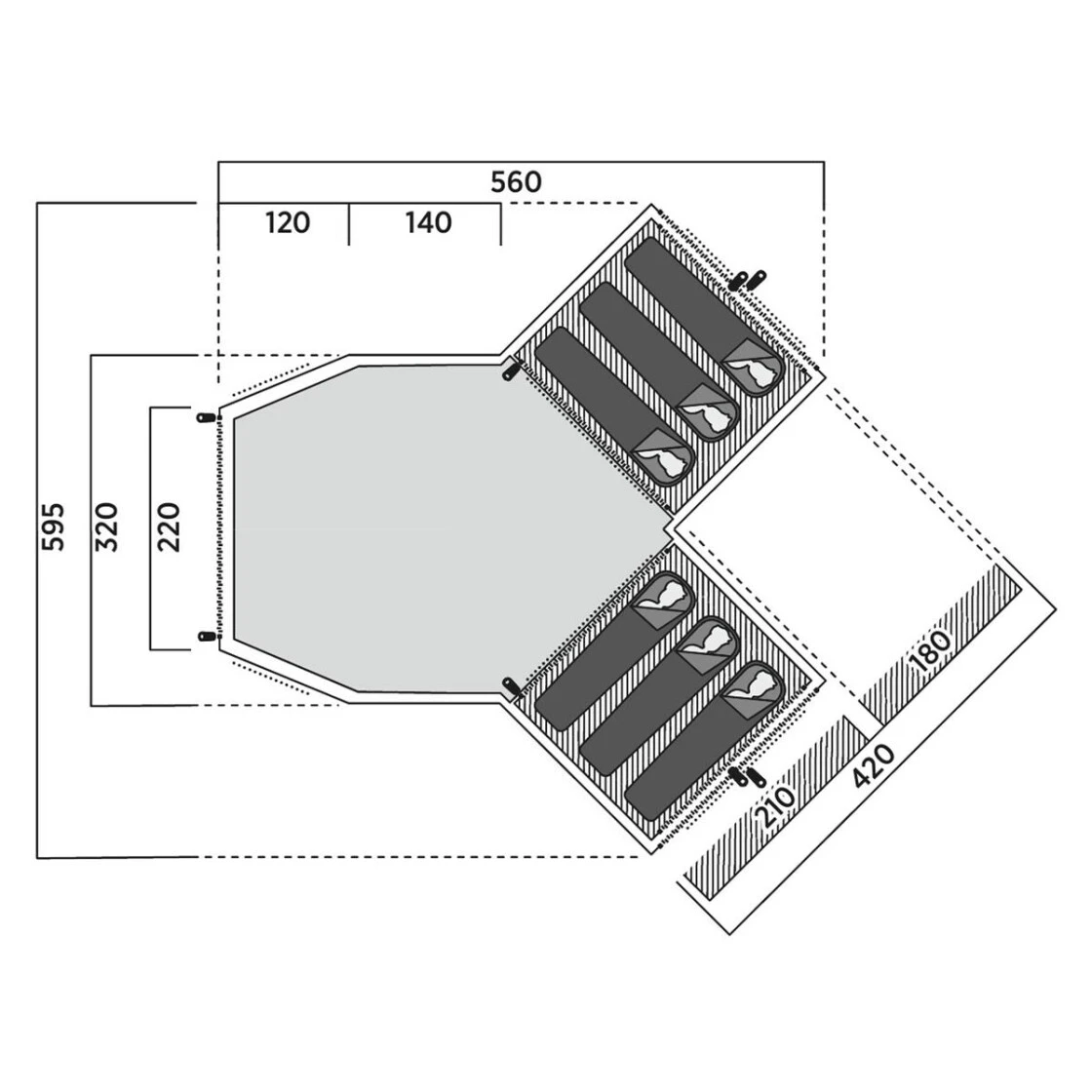 - Maße 595 x 560 x H 195 cm