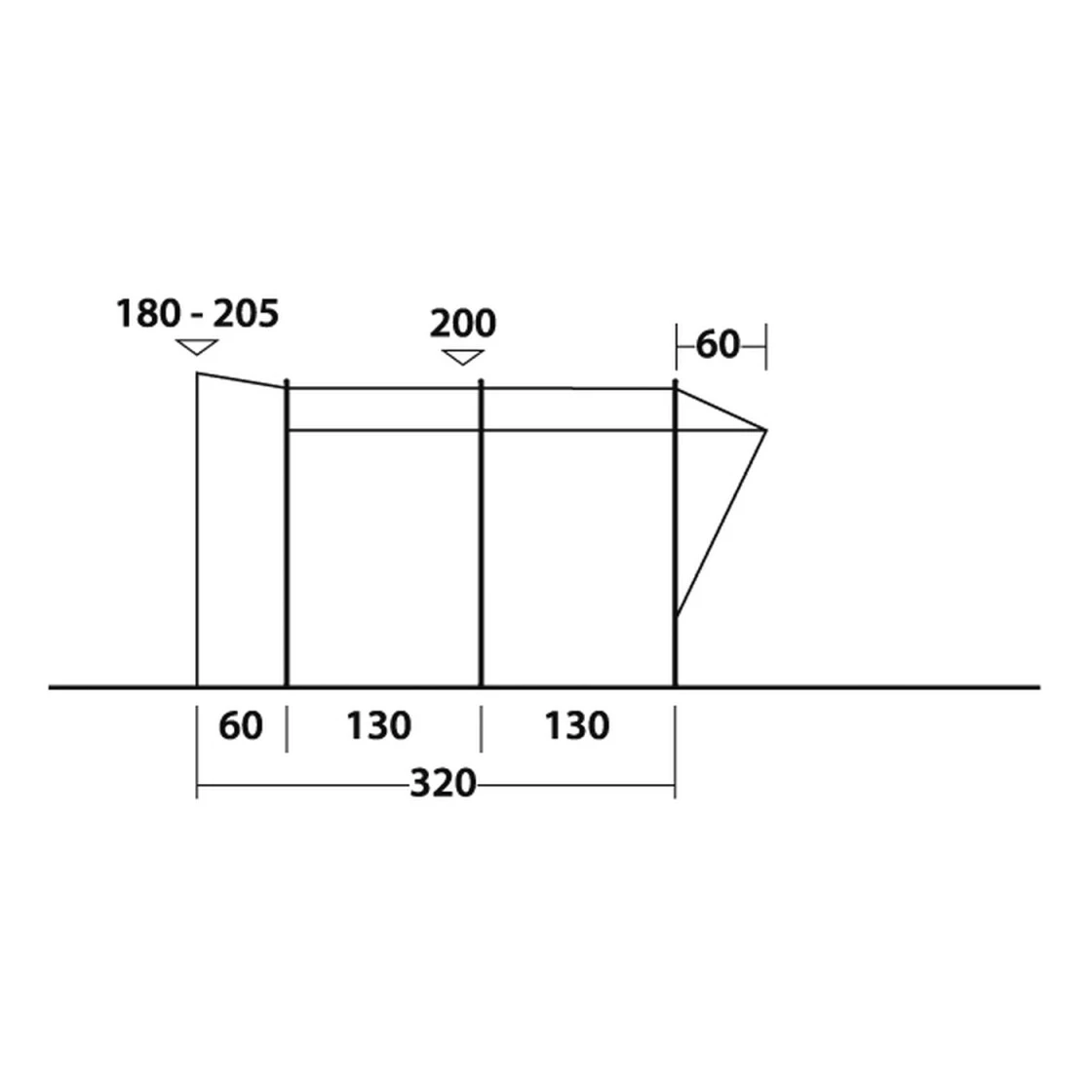 Ein freistehendes Vorzelt in Tunnelbauweise für Wohnmobile, MPV und Busse. Wird mit zwei vorgebogenen Gestängebögen aufgebaut und durch zwei Stahlstangen im Inneren stabilisiert. Das Zelt hat wegen der großen Fensterflächen eine gute Aussicht zu bieten und ist hell und geräumig. Die Fenster sind mit Vorhängen ausgestattet. Der Boden ist wannenförmig hochgezogen um Schutz vor Feuchtigkeit und Insekten zu bieten. An der Rückseite ist eine Doggingzone, welche ein bequemes Rangieren des Autos an das Zelt ermöglicht. Das Verbindungsteil zwischen Auto und Zelt wird dann einfach über das Auto gezogen und befestigt.
