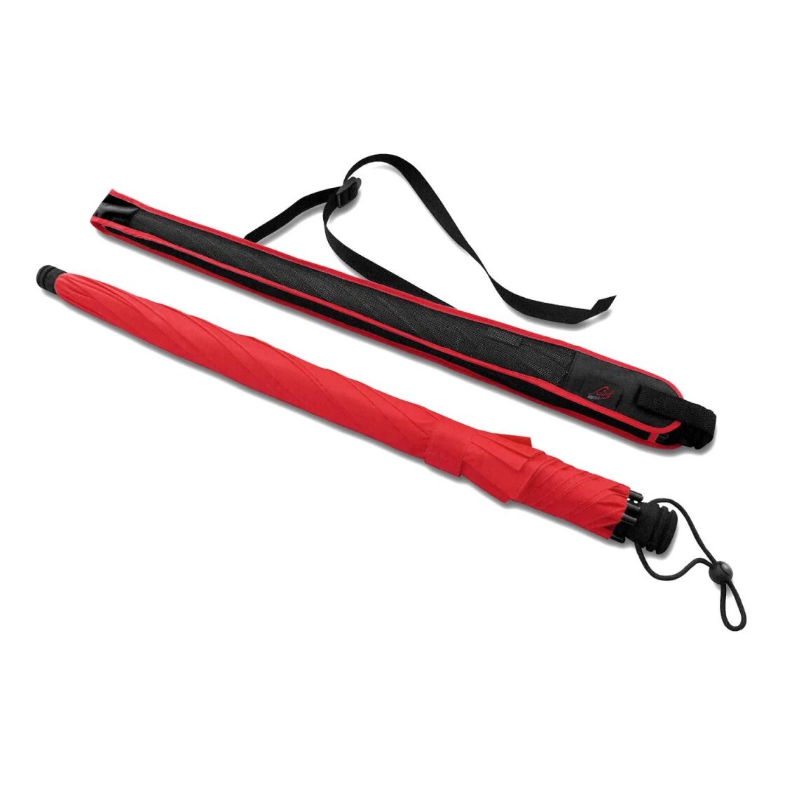 Trotz des unglaublichen ‚Fliegengewichtes‘ ist dieser Trekkingschirm absolut robust und nahezu unzerbrechlich. Erstklassige Verarbeitung neuester Materialien zeichnet dieses einmalige Produkt aus. Mit einem Gestell aus High-Density-Glasfaserschienen mit leichtestem, speziell beschichtetem Glasfaserstock und neu entwickeltem Sicherheitsschieber. Der Griff aus superleichtem und besonders handsympathischem High-Density-EVA-Hartschaum sorgt mit dem Rillenprofil für ein trockenes, gutes Griffgefühl, auch bei Nässe. Mit verstellbarer Trageschlaufe. Der Bezug ist aus 100 % Polyestergewebe, leicht wie ein Hauch, extrem reißfest, mit schmutzabweisender Teflon®-Behandlung (eingetragene Marke von DuPont, die unter Lizenz von Eberhard Göbel GmbH & Co. genutzt wird) mit höchstem Abperleffekt. Der Trageköcher mit rutschfestem Tragegurt und Netzeinsatz, lässt sich leicht zusammenfalten und ist ebenfalls federleicht. Ein Dauerbegleiter bei jeder Wetterlage, ohne nennenswerte Gewichtsbelastung.