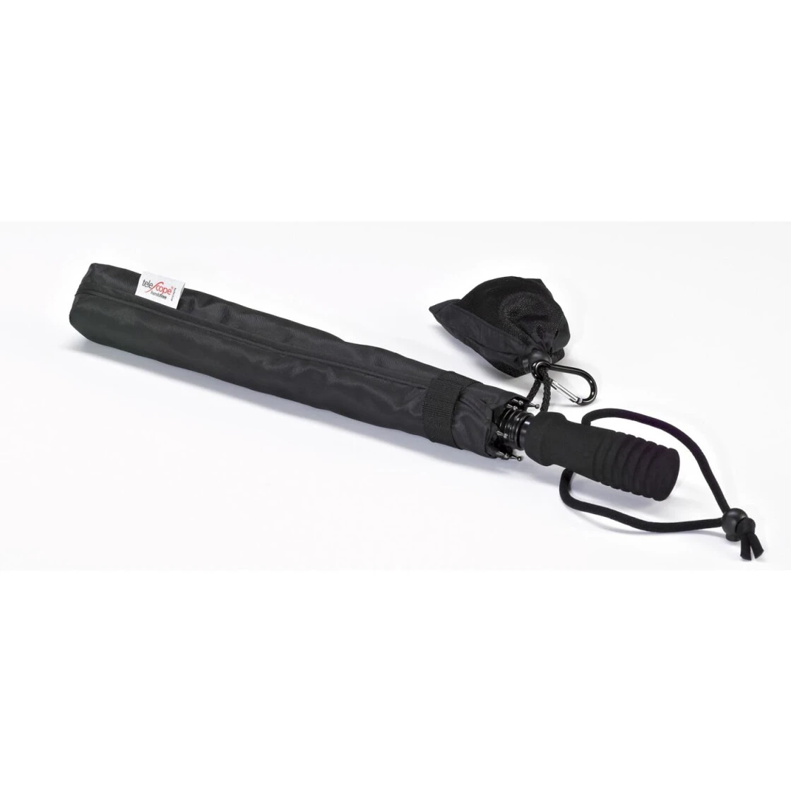 Modell der Sonderklasse: handfreier und teleskopierbarer Trekkingschirm. Der Schirm ist unkompliziert vorne am Rucksacktragesystem zu befestigen (Hüftgurt ist Voraussetzung!) und sowohl gerade, als auch geneigt (zur Windseite) zu tragen. Beide Hände bleiben frei, um z. B. mit Stöcken zu gehen, Karten zu lesen, den Hund zu dirigieren oder die Kinder zu führen. Der Schirmgriff kann mittels 2-facher Teleskopverstellung passend in der Länge eingestellt werden. Mit leichtem Fiberglasgestell und hauchdünner Bespannung aus 100 % Polyestergewebe mit Teflon®-Behandlung (eingetragene Marke von DuPont, die unter Lizenz von Eberhard Göbel GmbH & Co. genutzt wird), für den höchsten Abperleffekt. Natürlich ist der Schirm auch als ’normaler‘ Trekkingschirm zu nutzen. Komplett mit Befestigungsklipps und Trageköcher. In oliv optimal für Naturfreunde, Jäger, Fischer usw.