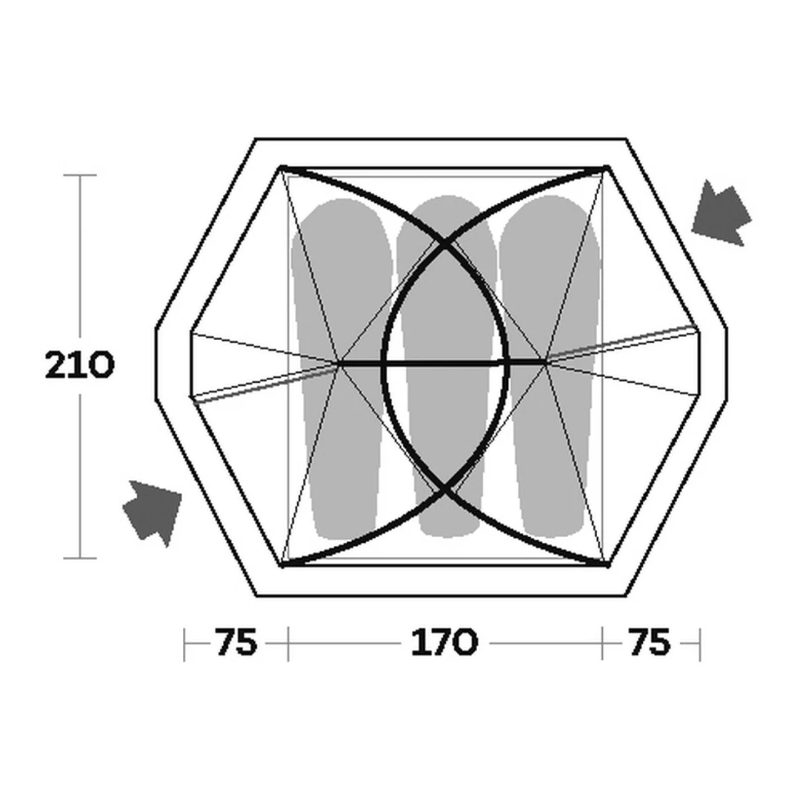 - Boden 210T Oxford Polyester 130 g/m², aluminisierte PU-Beschichtung