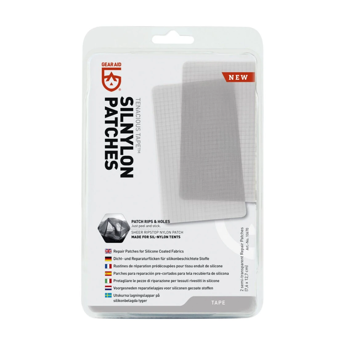 Die weltweit ersten Klebeflicken für silikonbeschichtete Gewebe. Löcher und Risse in silikonbeschichteten Ultraleicht-Geweben können jetzt problemlos und schnell repariert werden. Dank des reißfesten Ripstop-Nylons, welches mit einem neu entwickelten Silikonkleber beschichtet ist, erhält man eine dauerhafte, fast unsichtbare Sofortreparatur auf Zelten, Schlafsäcken, Planen, Rucksäcken und Packsäcken aus Silnylon/Silpoly Geweben – egal ob unterwegs oder zuhause. Das Reparaturset enthält zwei semi-transparente Flicken. Wie alle Tenacious Tapes sind auch diese Patches waschbar und wetterfest. Jetzt ist es leichter als je zuvor, beschädigte Ausrüstung oder Kleidung aus ultraleichtem Gewebe schnell und einfach mit Tenacious Tape Silnylon Patches zu reparieren. Kein Nähen keine Hitze erforderlich. Einfach zuschneiden, Trägerfolie entfernen und aufbringen. Das semi-transparente Material passt zu jeder Stofffarbe und ist nahezu unsichtbar.