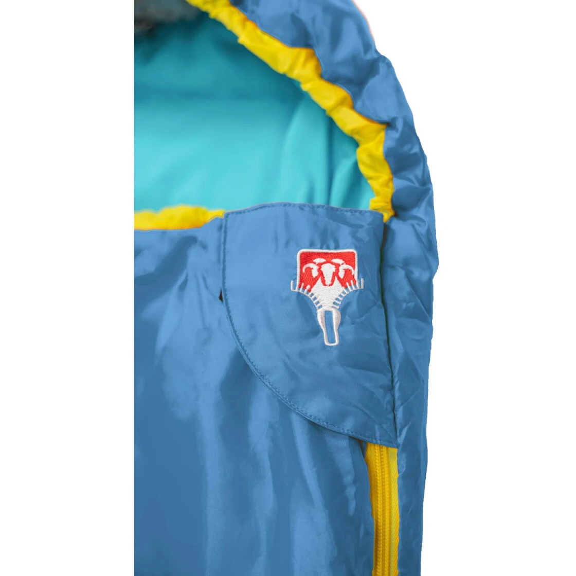 Hochwertiger, kuscheliger Kinderschlafsack, der mitwächst. Durch die frechen Farben ist er ein richtiger Hingucker. Der erweiterbare Fußraum, der sich passend zum Wachstum des Kindes einfach per Reißverschluss vergrößern lässt. Passt so für Kinder mit einer Körpergröße zwischen 100 und 155 Zentimetern. Der hochwertige Reißverschluss ist mit einer gefütterten Abdeckleiste geschützt und ein Rückhalteband am Reißverschluss ermöglicht ein einfaches Öffnen und Schließen des Schlafsackes ohne Klemmgefahr, so können die Kleinen auch einmal selbstständig herausschlüpfen. Im Lieferumfang enthalten ist der Easy-Packsack. Dieser kann zum Transport auf ein geringes Packmaß komprimiert werden.