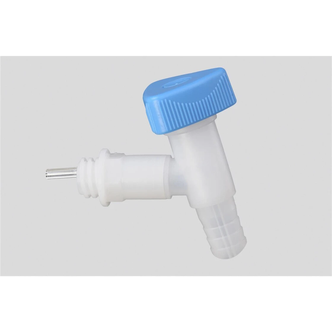 Ablasshahn Profi mit Breitgewinde 22 mm, natur mit blauem Drehgriff aus lebensmittelbeständigem Polyethylen HDPE/LDPE. Druckbeständig bis max. 0,4 bar, säure- und chemikalienbeständig. Mit integrierter Belüftung, um ein gluckerfreies schnelles Auslaufen zu gewährleisten. Außen-Ø Tüllenanschluss 19 mm bzw. 3/4 (Innen-Ø Tüllenanschluss 15 mm).