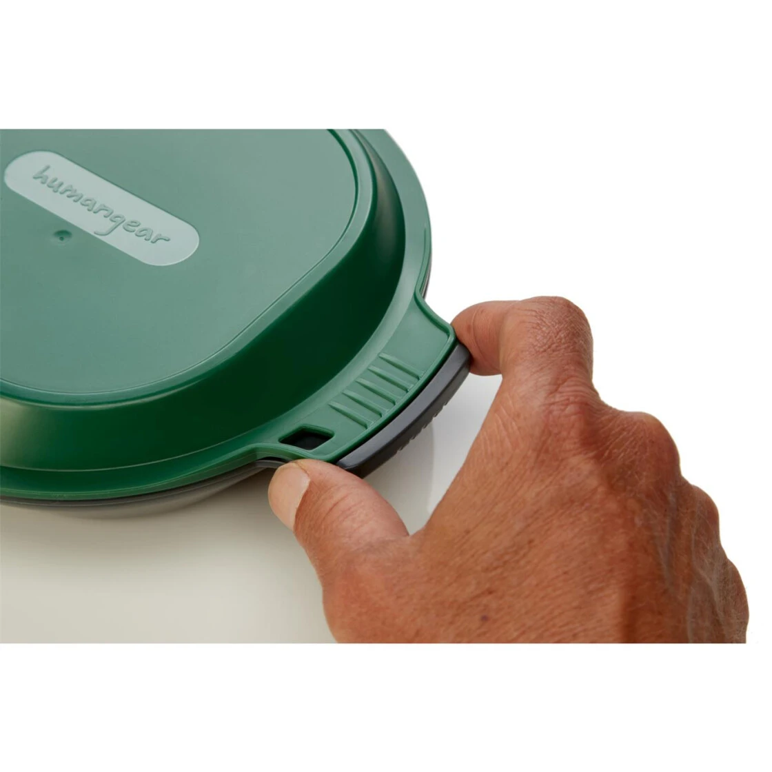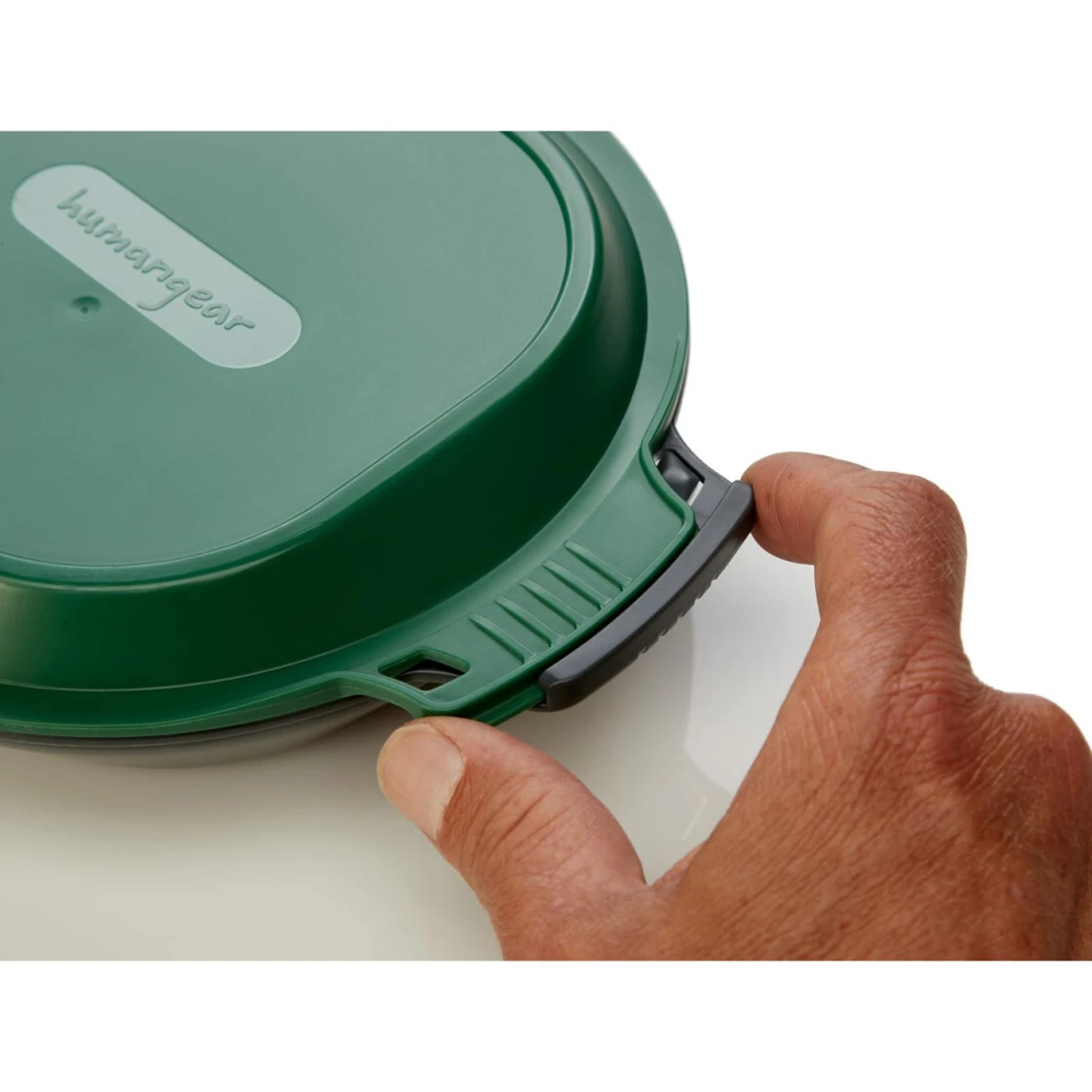 Die Lunchbox mit einem intelligenten Design und aus recycelbarem Polypropylen hergestellt. Durch einfaches Drehen, ist die Lunchbox leicht zu öffnen und zu schließen. Dies sorgt für den sicheren Transport ihrer Mahlzeit. Die Konturen am Rand entsprechen der Form des Uno-Löffels zum einfachen Schaben. Eine gummierte Fläche mit Thermorippen am Boden, verhindert ein Abrutschen des Essens auf einer Tischplatte. Ausgestattet mit Befestigungslöcher und einem Zahnstocher. Das Set ist spülmaschinenfest und mikrowellengeeignet. In verschiedenen Ausführungen erhältlich.