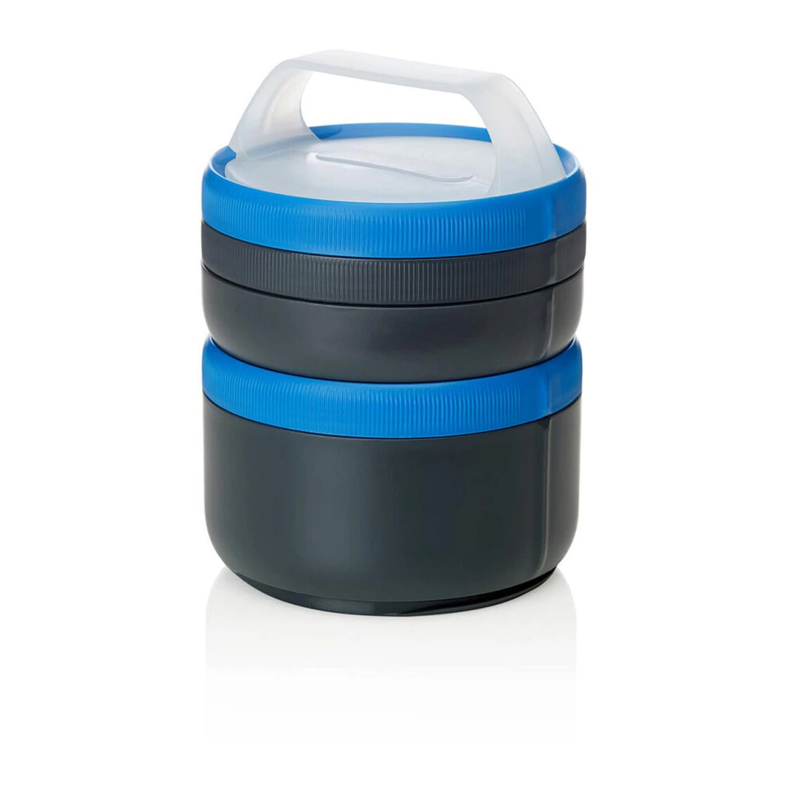 Modulares auslaufsicheres Aufbewahrungssystem mit einfachem Öffnen und Schließen durch 180-Grad-Drehung. Die Behälter sind spülmaschinenfest, mikrowellengeeignet und leicht zu reinigen. Ausgestattet mit einem Clipgriff, der zum Beispiel an einem Rucksack befestigt werden kann.