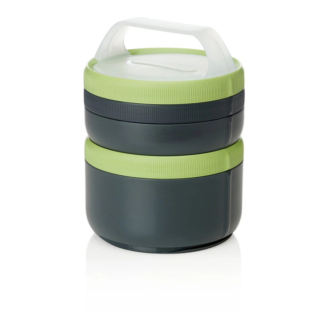Modulares auslaufsicheres Aufbewahrungssystem mit einfachem Öffnen und Schließen durch 180-Grad-Drehung. Die Behälter sind spülmaschinenfest, mikrowellengeeignet und leicht zu reinigen. Ausgestattet mit einem Clipgriff, der zum Beispiel an einem Rucksack befestigt werden kann.