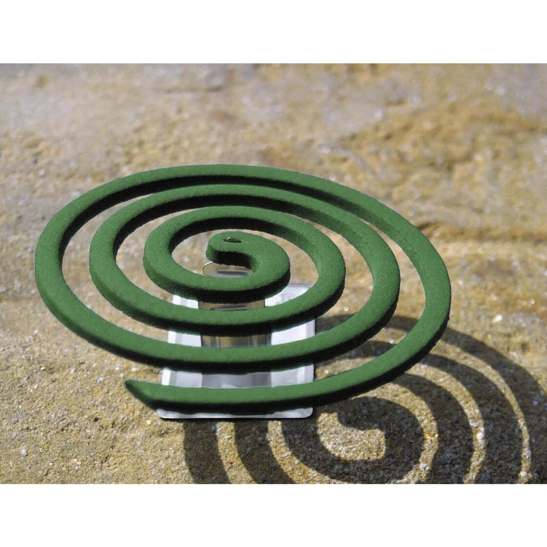 Die bekannten Antimückenspiralen zur Abwehr der ungeliebten Flieger. Werden mit dem beigelegten Standfüßchen aufgestellt oder im Spiralenhalter eingelegt (dieser ist als Zubehör unter Nummer 388688 erhältlich). Das Ende der Spirale anzünden. Glimmt dann ca. 6 Stunden (abhängig vom Wind) und vertreibt bzw. tötet Mücken und andere Insekten. Vorsicht: Ist auch für andere Kaltblüter, wie z. B. Fische, giftig. Wirkungskreis bei günstigen Bedingungen ca. 28 qm. Am effektivsten bei Windstille.