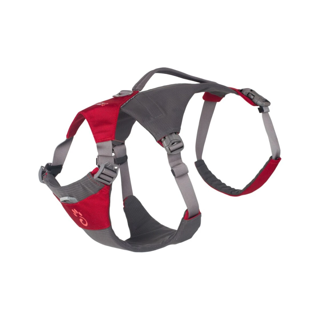 Atmunsgaktive und flexibel geschäumte Brustplatte, reflektierende Elemente, gepolsterter Handgriff zum Anheben und Halten des Hundes sowie ein Alu-D-Ring für die sichere Befestigung der Leine.