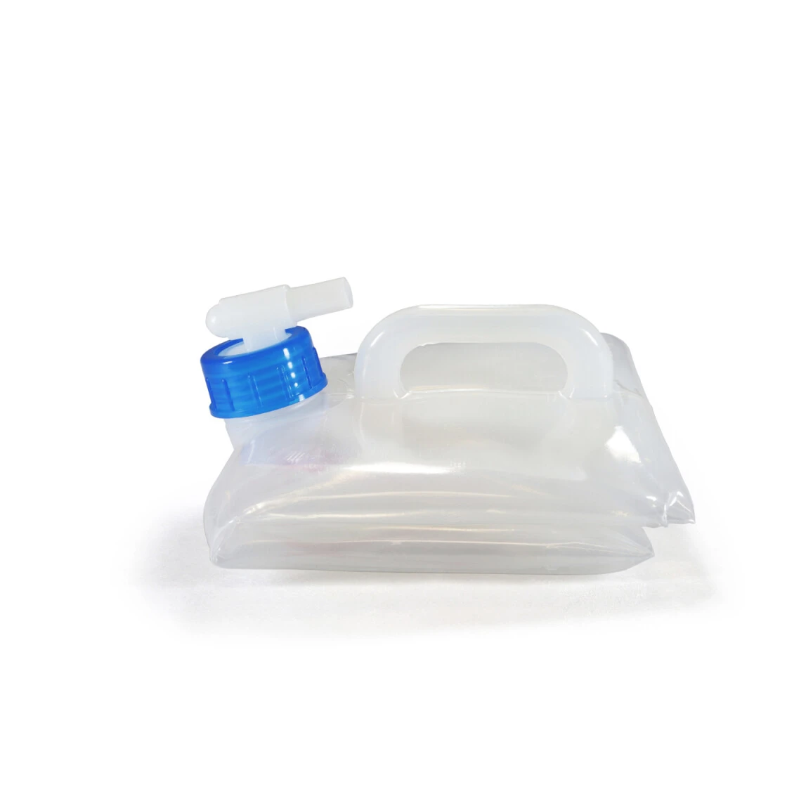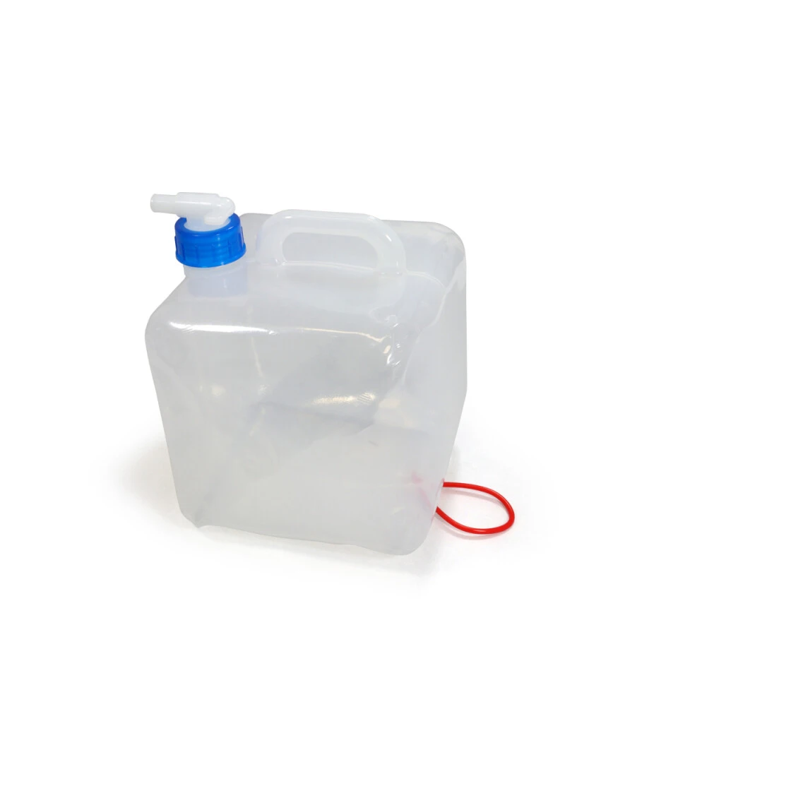 Praktischer Faltkanister mit Tragegriff aus stabilem Polyethylen. Der Kanister kann kompakt zusammengefaltet und platzsparend verstaut werden. Die rückseitig angebrachte Kunststoffschlaufe erleichtert das Entfalten des Kanisters. Ebenso kann sie zum Kippen des Kanisters beim Ausgiesen verwendet werden. Der Auslaufhahn lässt sich im Handumdrehen abschrauben und dank der 32 mm großen Öffnung lässt sich der Kanister schnell auffüllen. Durch die niedrige Position des Auslaufhahns wird ein nahezu vollständiges Entleeren des Kanisters ermöglicht. Der Füllstand lässt sich durch die Transparenz des Kanisters leicht erkennen. Das lebensmittelechte Material ist geruchs- und geschmacksneutral. Ideal für Camping, Reise und als Vorratskanister für Notfälle geeignet.