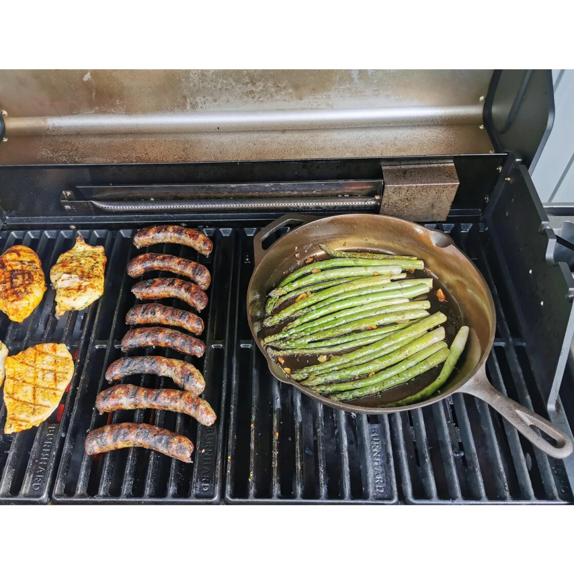 Die gusseiserne Feuerpfanne im einzigartigen, polierten Design und mit bereits eingebrannter Oberfläche. Die Pfanne ist leicht zu reinigen und ideal zum Kochen. Die Feuerpfanne mit Stiel und zusätzlichen Henkel funktioniert auf allen Herdarten (Induktion, Gas, Elektro, Backofen, Lagerfeuer und Ceran). Dank ihrer vorbehandelter Oberfläche, kann sie direkt, ohne vorheriges Einbrennen, verwendet werden.