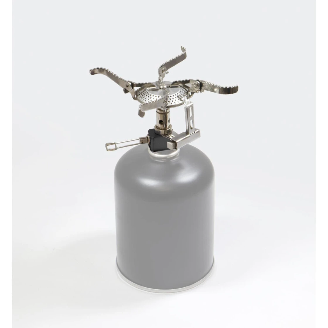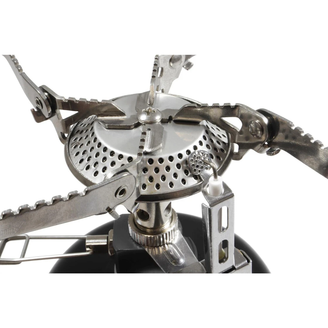 Edelstahl (3500 W) Kocher mit klappbaren Topfträgern. Der leichte und kompakte Kocher ist für Schraubgasventil-Kartuschen verwendbar und ist daher sofort einsatzbereit. Ausgestattet mit Piezozündung und Packsack. Perfekt für Rucksacktouren, bei denen das zu tragende Gewicht eine Rolle spielt oder den allgemeinen Campinggebrauch.