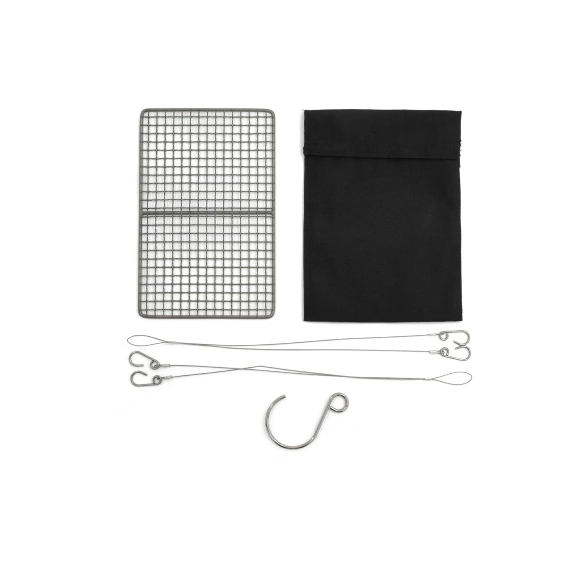 Superleichter und kompakter Grillrost aus Titan. Die mitgelieferte Aufhängung kann zum Kochen über dem offenen Feuer oder auch für Untesilien genutzt werden. Mit flachem Packmaß und Nylontransportschutz.