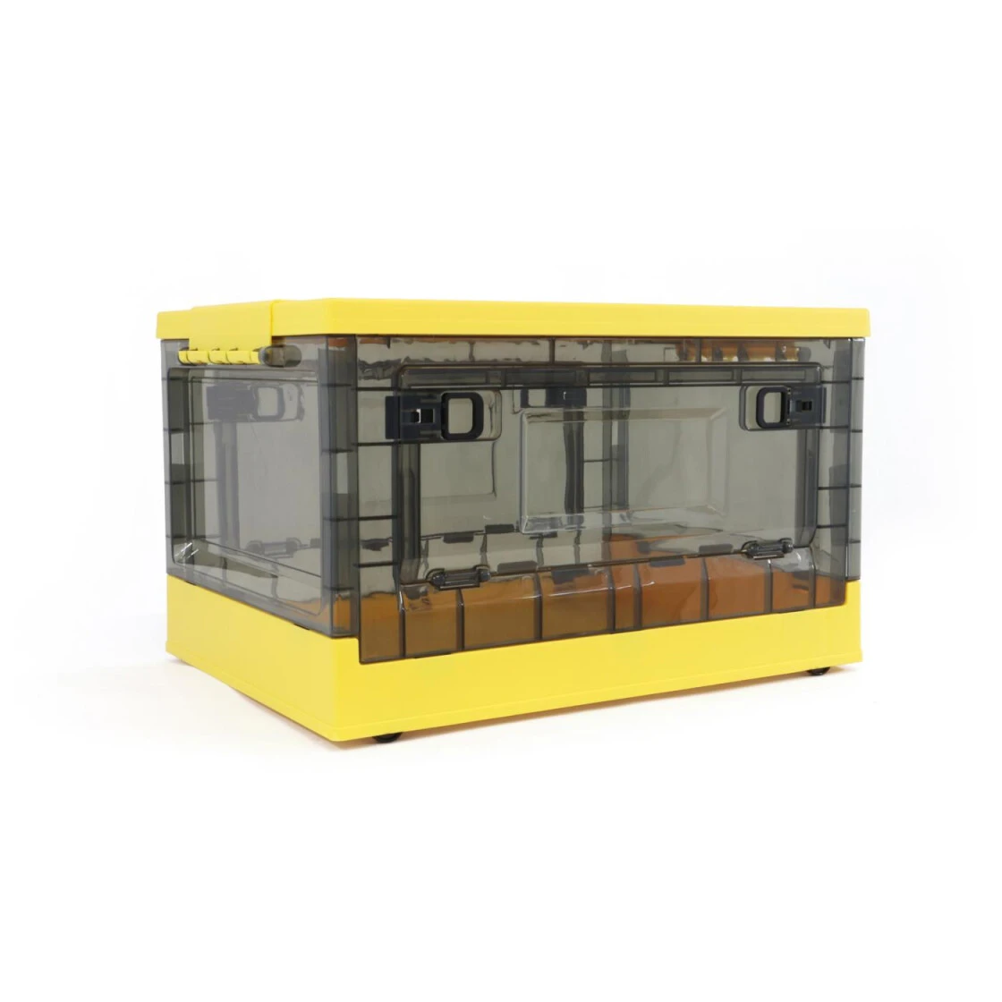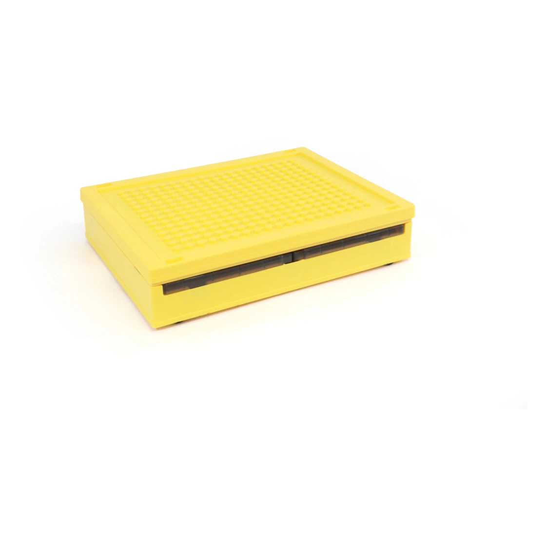 Stapelbare und robuste Klappbox mit zwei Seitenöffnungen, Rollen und Deckel. Die Seitenklappen ermöglichen ein Einfaches entnehmen des Inhaltes, ohne den Deckel zu öffnen oder die Kisten hin und her zu stapeln. Die Box kann auch als Sitzgelegenheit verwendet werden und ist platzsparend verstaubar durch Einfaches zusammenklappen. Der Deckel wird durch zwei stabile Clips festgehalten und kann auch im Kinderzimmer für Klemmbausteine genutzt werden. Die ideale Lösung für unterwegs oder auch zu Hause, um Ordnung zu halten.