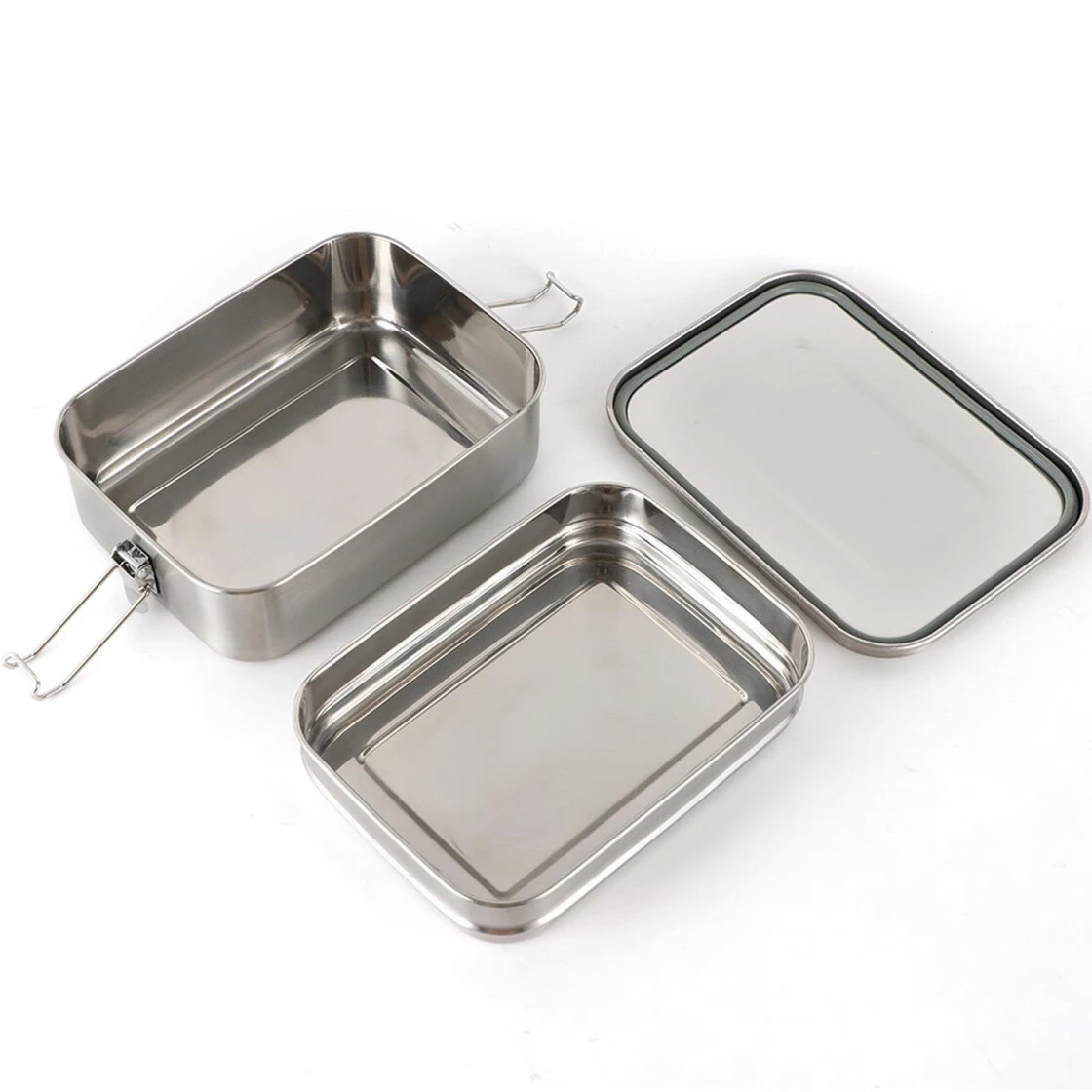 Kompakt und robuste zweigeteilte Lunchbox aus hochwertigem Edelstahl mit leicht zu öffnenden Verschlussclips ausgestattet. Der obere Teil (700 ml) ist ausgestattet mit einer Silikondichtung im Deckel und ist dadurch dicht und eignet sich so hervorragend für Soßen, Salat, Beeren, Obst und vieles mehr. Der untere Teil(1200ml) eignet sich für Nudeln, Reis, Butterbrote oder Snacks. Ihre Mahlzeiten bleiben frisch und geschützt vor Schmutz und Insekten. Verwendbar als Brotdose für Schule, Büro, Ausflug oder auch als Aufbewahrungsbox von Accessoires.