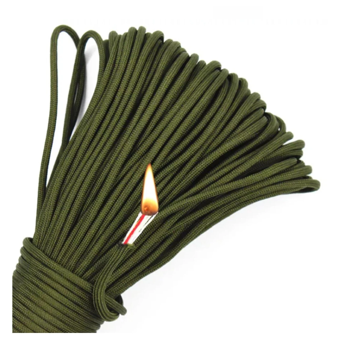 Das Paracord ist im inneren durchgängig mit einer roten wachsgetränkten Anzündschnur, einer gelben Angelschnur, einem Baumwollfaden und sieben dreilagige Schnüre ausgestattet. Je nach Bedarf kann von dem Paracord ein Stück abgeschnitten und aufgetrennt werden. Ideal für Outdoor, Camping, Jagd und Survival. Das Paracord ist vielseitig verwendbar, zum Beispiel zum Abspannen von Zelte, als Wäscheleine, zum Gepäck verzurren, für Boote, als Armband und vieles mehr.
