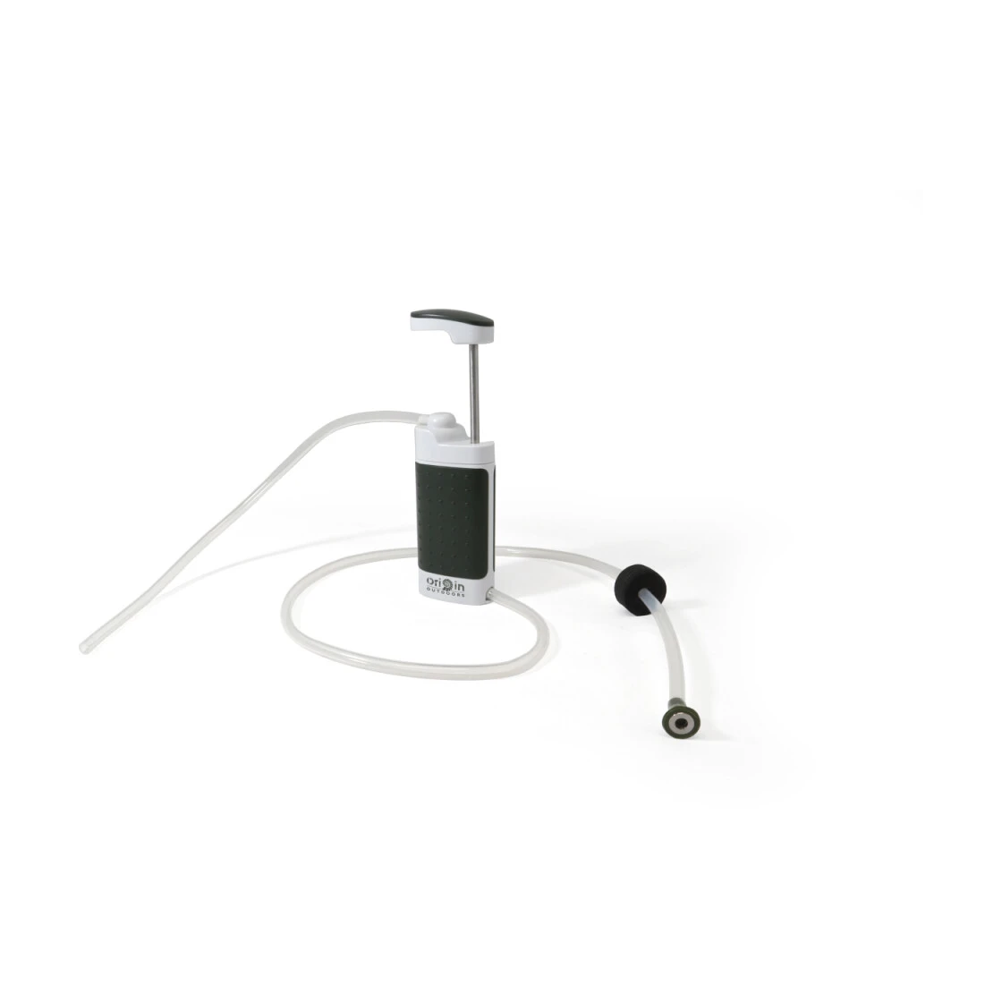 Der Wasserfilter ‚Mini‘ zeichnet sich durch sein kompaktes und leichtes Design mit 3-stufigen Filtersystem aus. Der Edelstahlsieb am Zufuhrschlauch filtert die groben Sedimente vor und verhindert ein Verstopfen des Filters. Der austauschbare Keramikfilter mit 0,1 Mikron Porengröße entfernt bis zu 99,9999 % der Bakterien und 99,99 % Protozoen Parasiten aus dem Wasser. Das NMC-Filtergranulat (Nano-Metallcluster auf porösen Keramikkugeln) innerhalb der Filterpatrone eliminiert die im Wasser befindlichen Schwermetallionen, Rückstände von Mikroorganismen und organischen Chemikalien wie Fluor, Ammoniak oder Stickstoffdioxid. Der Filter kann bis zu 2000 Liter sauberes und trinkbares Wasser bei 0,3 Litern Durchfluss pro Minute aufbereiten. Das Gehäuse besteht aus hochwertigem und sehr robustem ABS-Kunststoff. Eine gute Wahl für Reisen, Campen, Wandern und Notsituationen. Im Lieferumfang enthalten sind 6 Schleifpapiere für die Reinigung des Keramikfilters, ein Ersatzdichtring für die Pumpe und ein praktischer Transportbeutel.