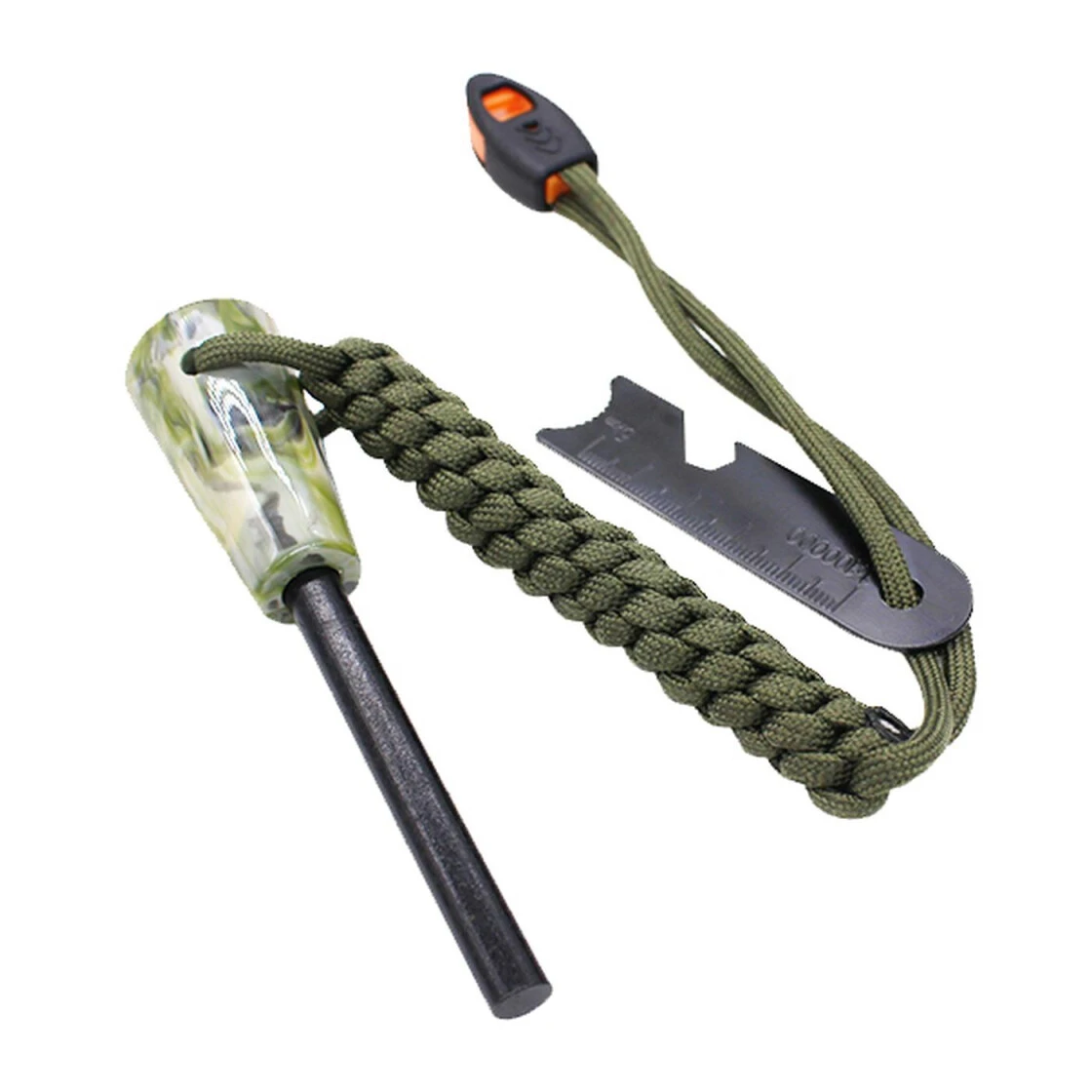 - mit Notfallpfeife, Flaschenöffner, Kartenmesser, Lineal, 8er Schlüssel