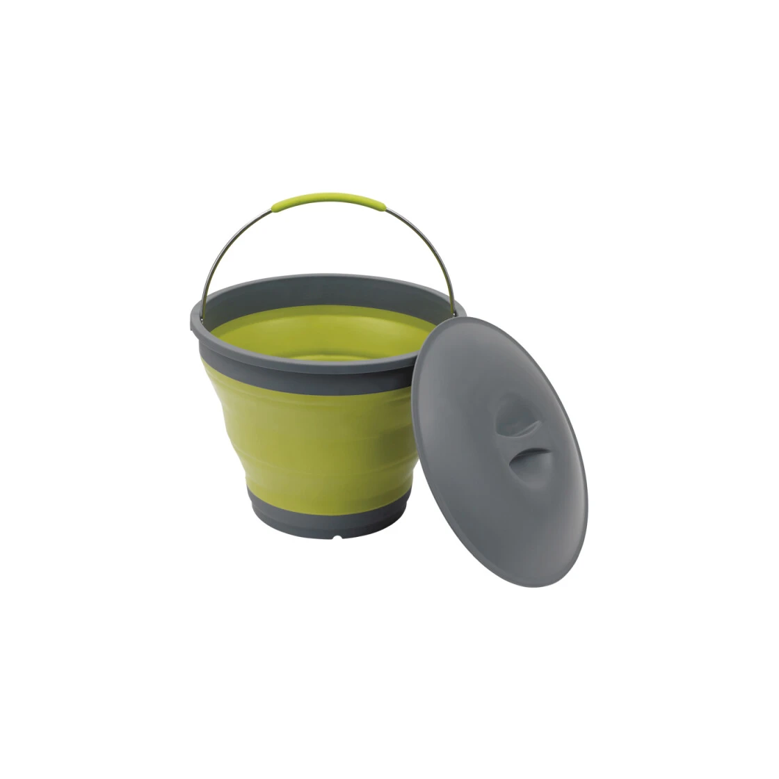 Praktischer Eimer mit Henkel und Deckel für Outdoor und Camping. Zum Transport ist er sehr flach zu falten und findet deshalb immer einen Platz im Gepäck. Vor Ort ideal zum Wasserholen, Waschen, als Mülleimer oder Spielzeug etc. Mit 7,5 Litern Volumen ausreichend groß und sehr stabil.
