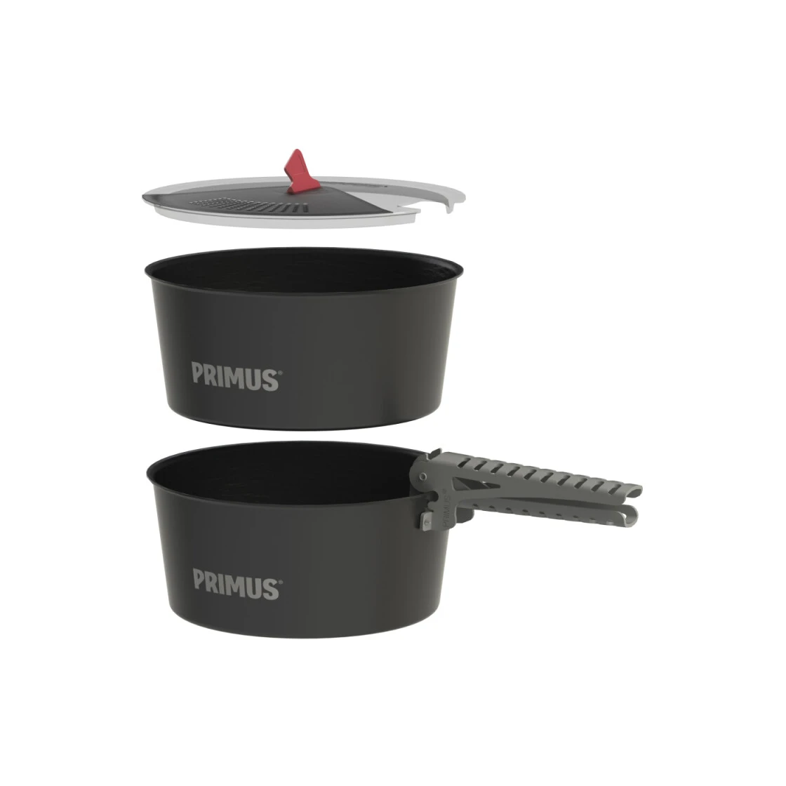 Ultraleichtes Kochgeschirr aus gehärtetem Aluminium mit Antihaftbeschichtung auf der Innenseite. Set mit 2 Töpfen, die klapperfreier ineinander passen. Der Deckel ist mit einem integrierten Sieb versehen. Die Griffzange gehört ebenso zum Lieferumfang wie der Packbeutel.