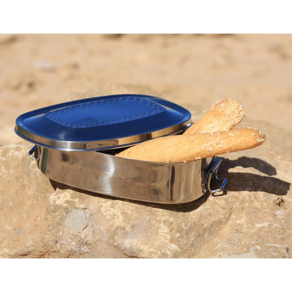 Praktische Proviantdose aus Edelstahl. Der Deckel wird mit 2 Rollklammern auf der Dose gehalten. Perfekt für Brote, Obst oder Proviant. Aber auch für Kleinzeug, Fotozubehör, Erst-Hilfe-Sets, als Spardose oder für das Schuhputzzeug geeignet. Kann zur Not auf Flammenkochern benutzt werden – dann den Deckel nicht befestigen. Ohne Dichtung.