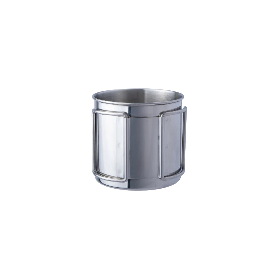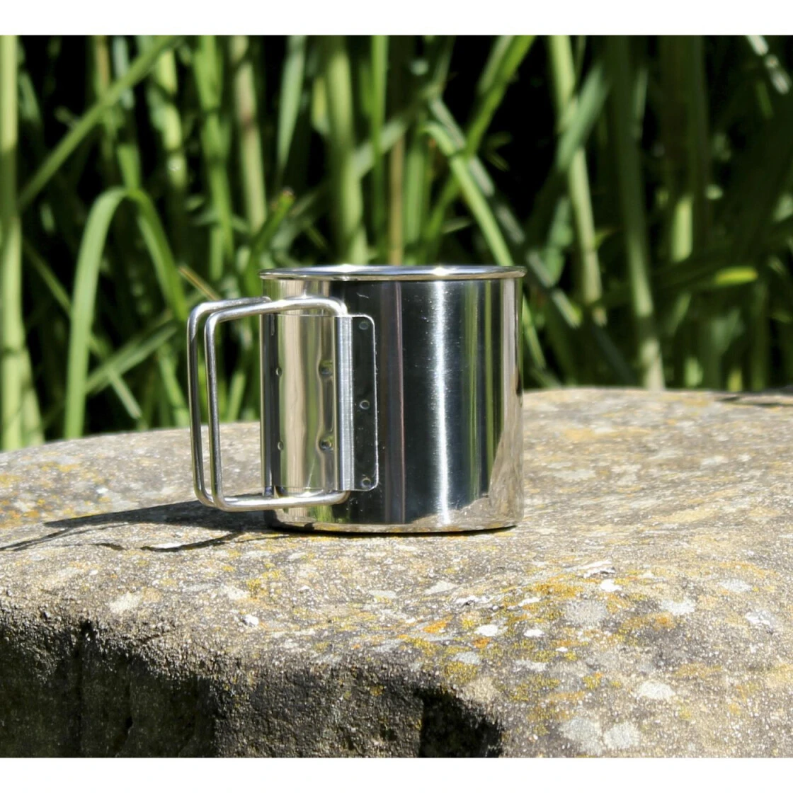 Einfacher Edelstahlbecher aus dem guten 18/8 Stahl mit faltbaren Griffen. Dadurch sehr schlank und gut zu verstauen. Die Griffbefestigung ist stabil und breit angebracht um dauerhaften Halt zu bieten. Der Innendurchmesser von 7,7 cm erlaubt auch die platzsparende Mitnahme der Nalgene OTG, der Nalgene Weithalslfaschen 0,5 Liter oder auch der BasicNature Weithalsflasche 500 ml.
