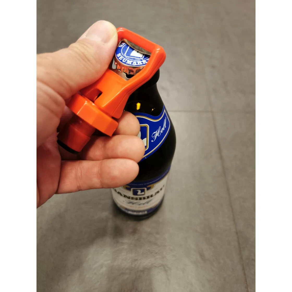 Macht geöffnete Flaschen wieder dicht. Die Getränke bleiben somit auch länger genießbar. Ideal für die Nutzung von Standard Glasflaschen unterwegs. Der Verschluß wird in den Flaschhals gesteckt, das Oberteil dann seitlich umgelegt. Dadurch wird die Dichtung gleichmäßig in den Flaschenhals gedrückt und schließt gut ab. Mit Kronkorkenheber.