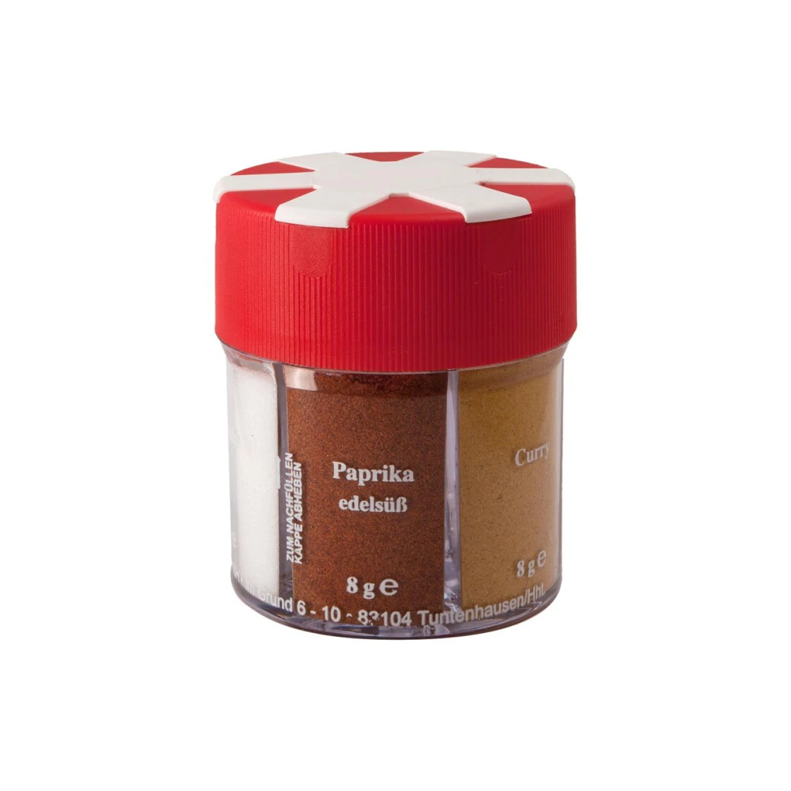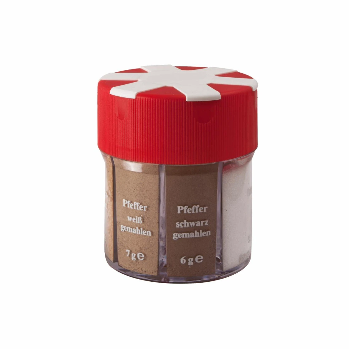 Der Klassiker unter den Gewürzstreuern – ‚6 in 1‘. Alles, was der Gourmet bei Camping, Freizeit, Grillfest oder Reisen zum richtigen Würzen benötigt.