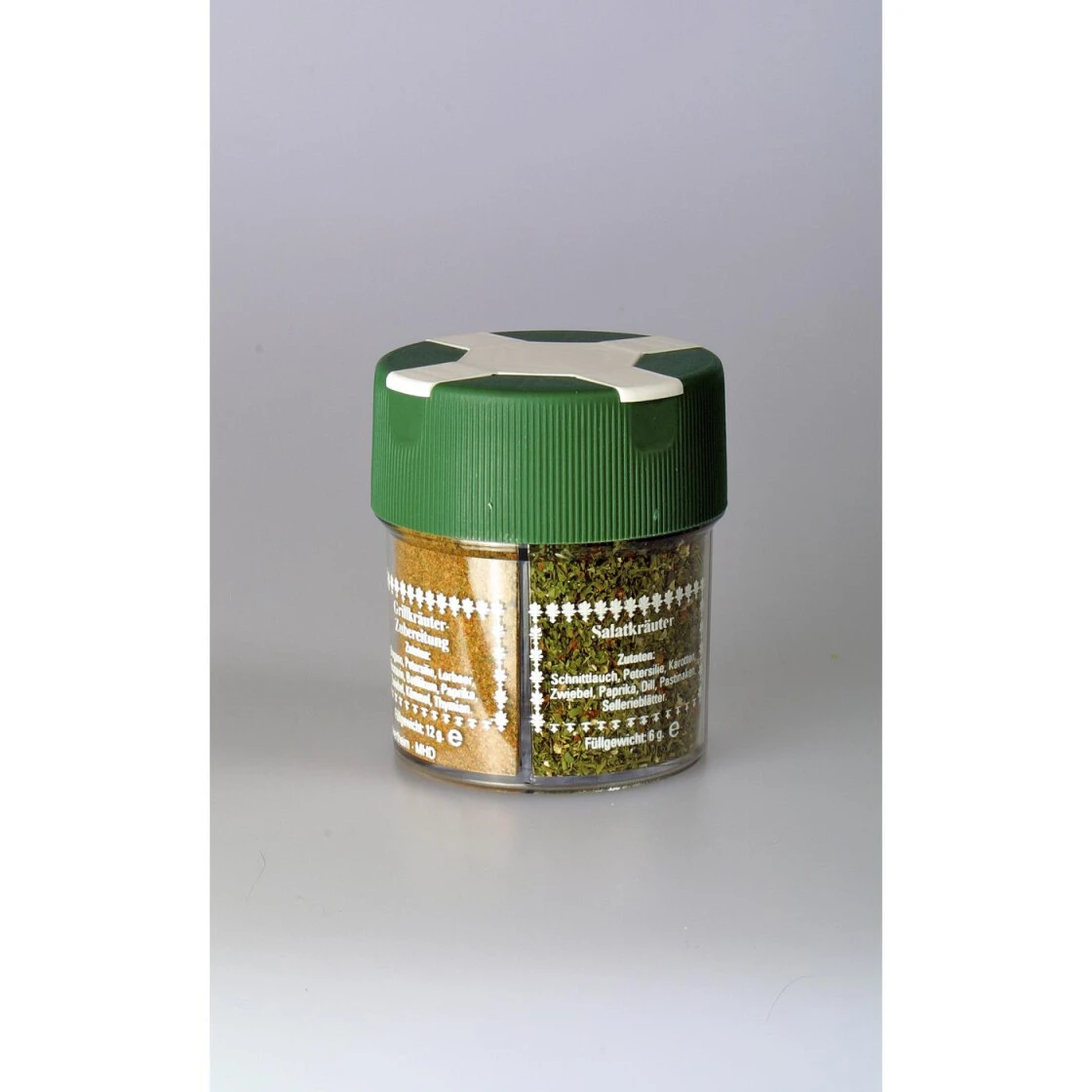- Kräuter der Provence (15 g), Grillkräuter (12 g), buntes Salatgewürz (16 g) und Virginia Gewürzmischung (10 g)