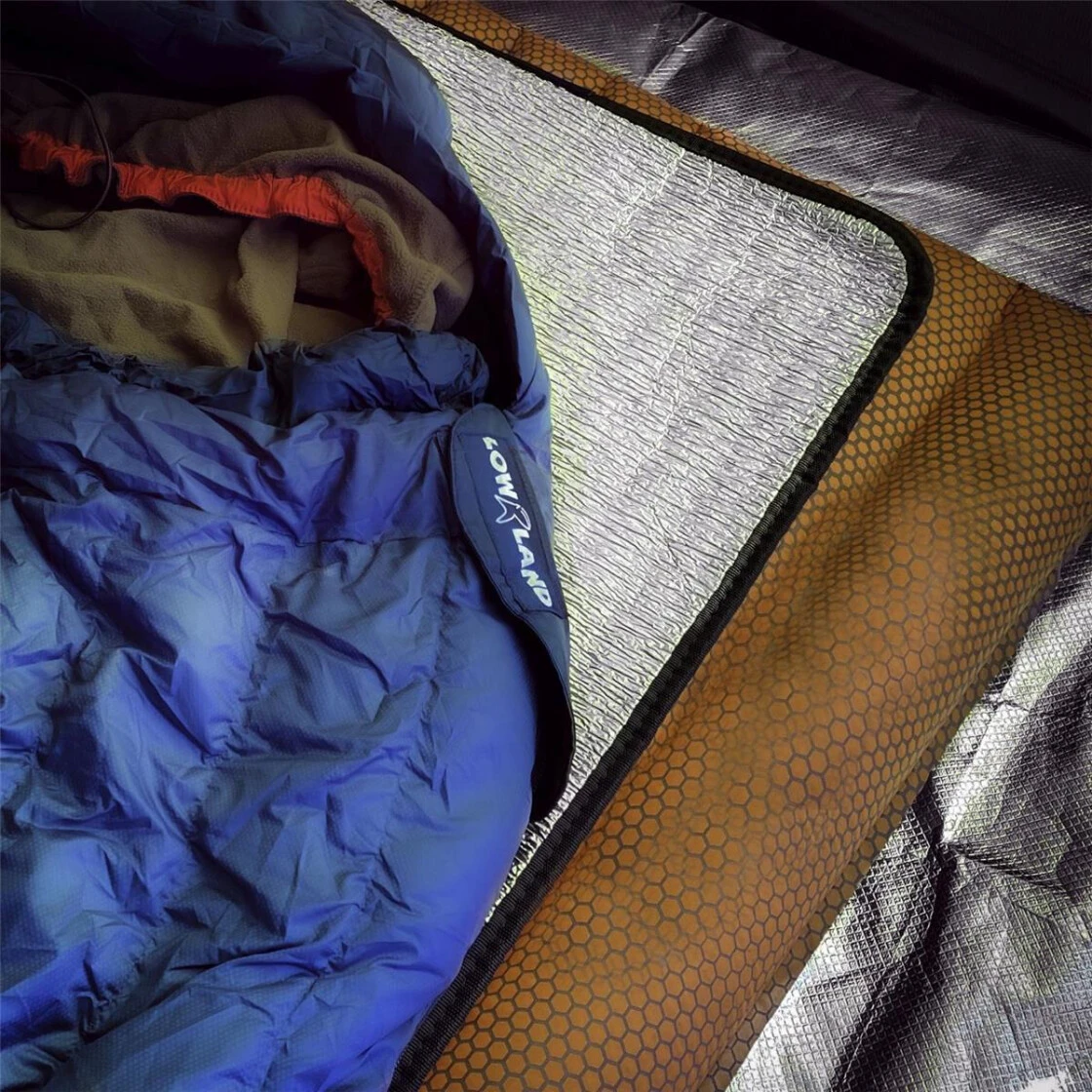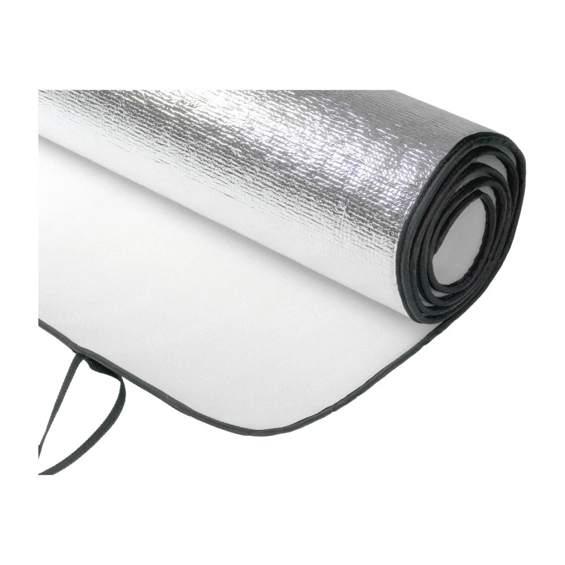 Komfortable, extrem leichte und isolierende Unterlage mit PE-Schaumeinlage, mit beidseitiger Alubeschichtung. Hergestellt aus stabilem Gewebe und ausgestattet mit 2 Gummibändern zum besseren Verpacken. Gut geeignet für kalte und nasse Untergründe, zur Verbesserung der Isolierung bei Luftmatratzen und Isomatten oder als Picknickunterlage.