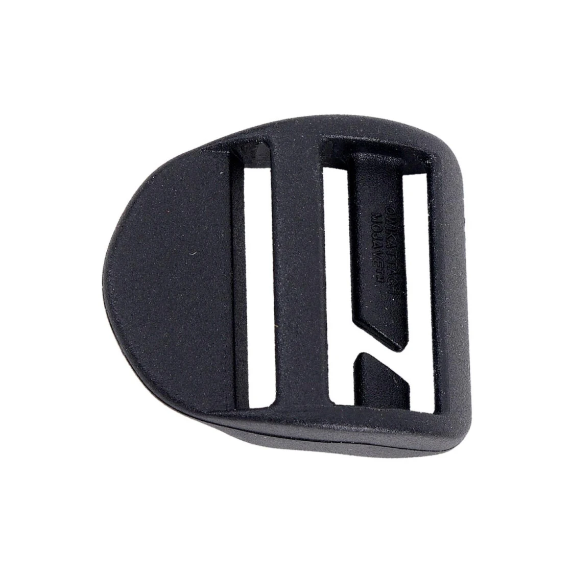 Ein Steg ist geschlitzt, um das Einführen in eine bestehende Riemenlasche zu ermöglichen. So kann eine Reparatur an Rucksack oder sonstiger Ausrüstung zügig und ohne Nähen durchgeführt werden.