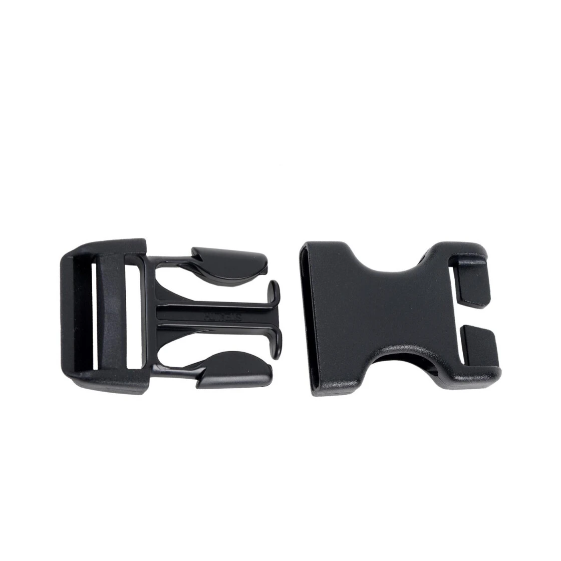 Diese Steckschließe ist auf der ‚weiblichen‘ Seite offen und somit für die Anbringung an bestehende Gurtschlaufen gedacht. Das Optimum für Reparaturen.