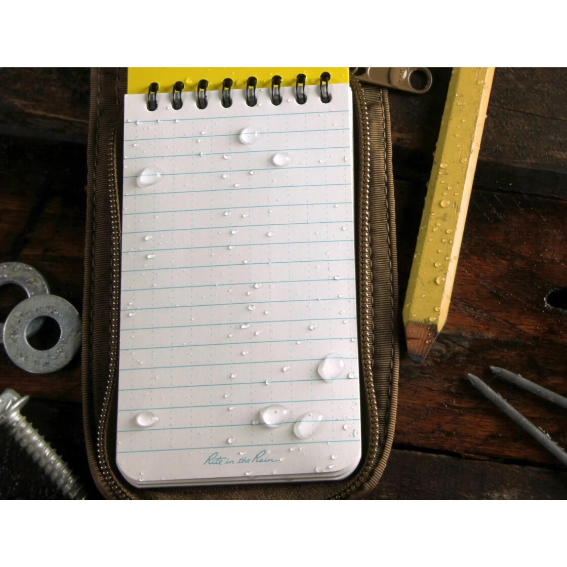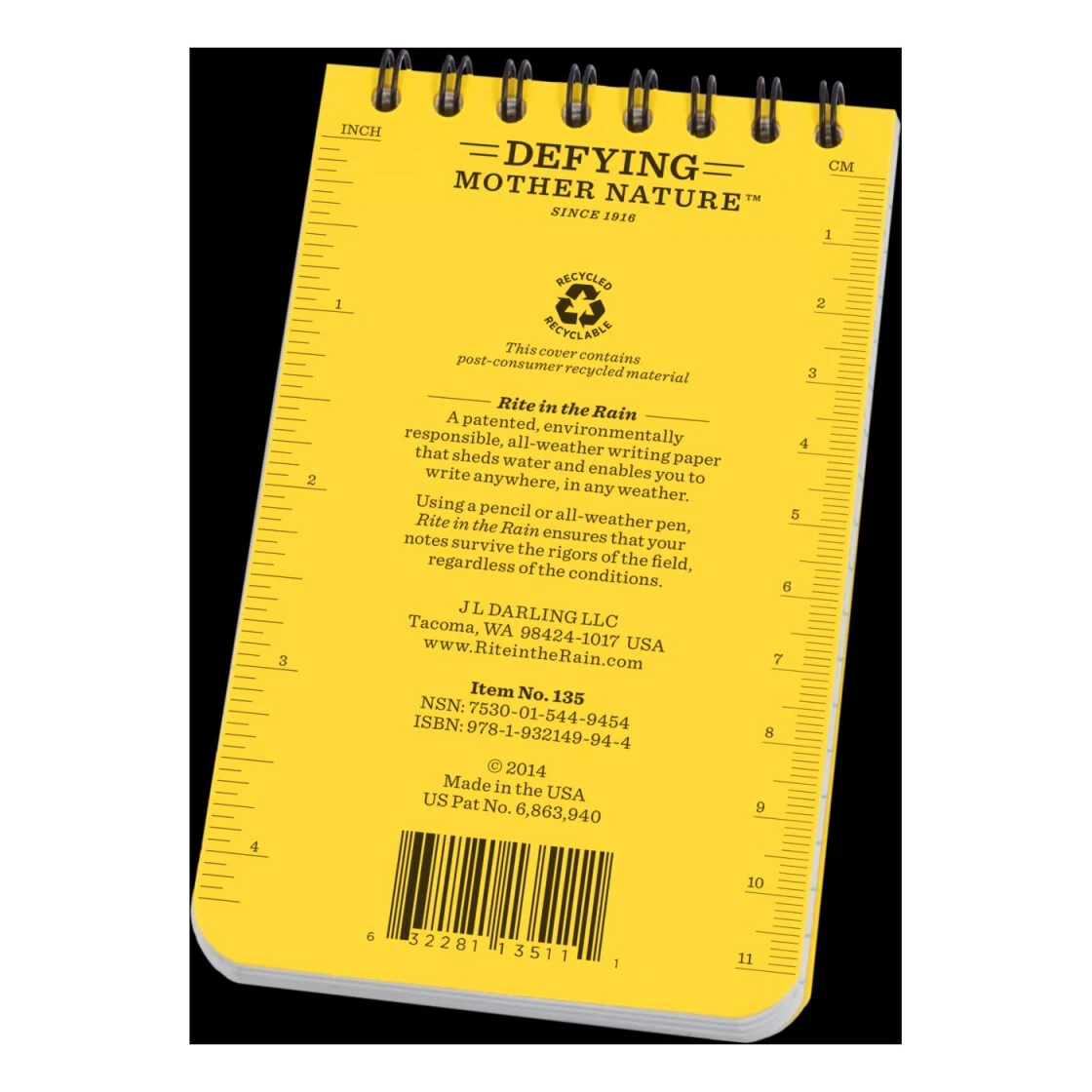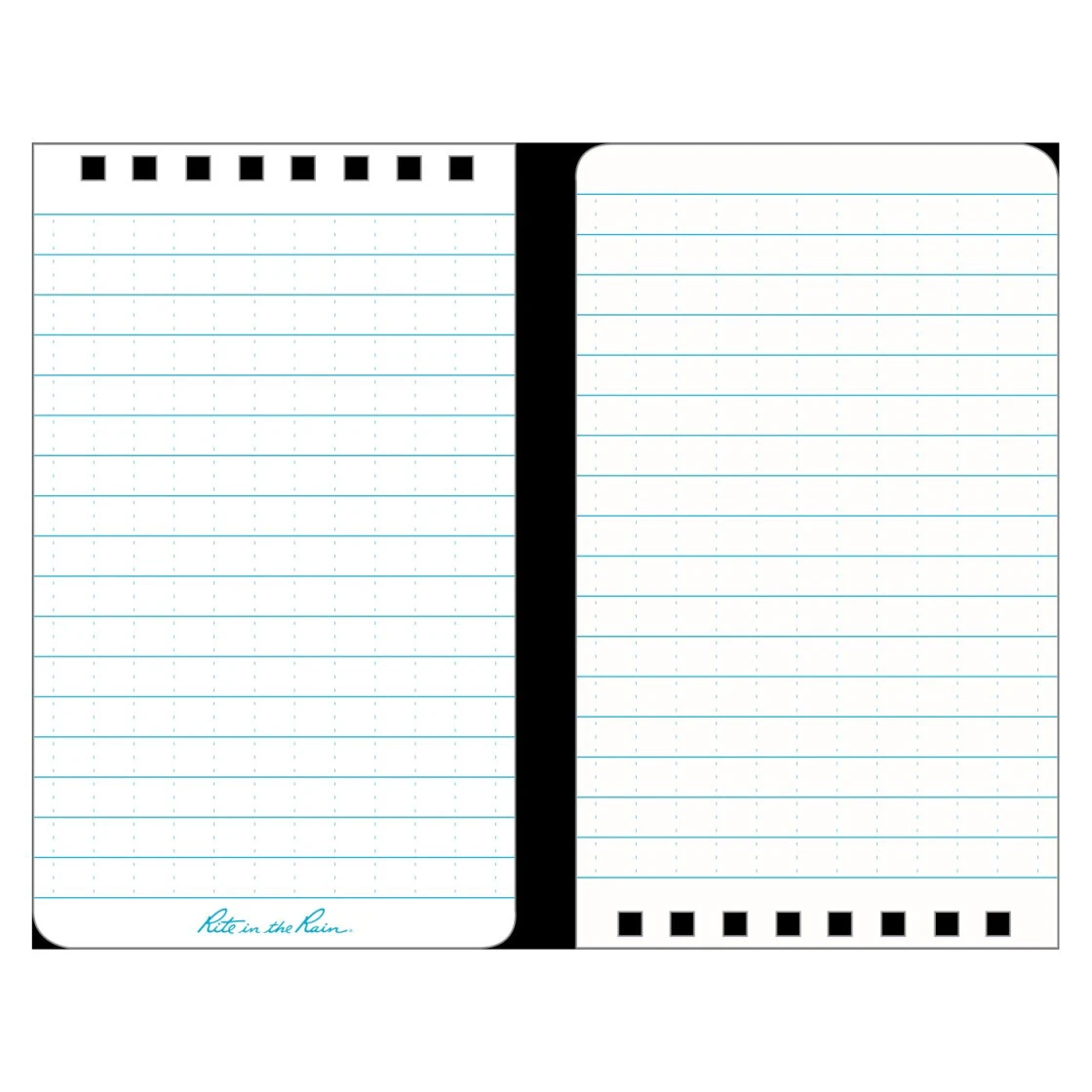 Das All-Weather Notebook von Rite in the Rain passt in jede Tasche und ist zäh genug um alle Kapriolen von Mutter Natur zu überleben. Dieses Notebook zeigt sich unbeeindruckt von Schweiß, Regen, Matsch, Schnee, Öl, Fett und dem Verschleiß bei täglichem Gebrauch. Es kann mit allen Stiften und Schreibern darauf geschrieben werden, außer mit wasserbasierender Tinte. Im Einband sind umfangreiche Umrechnungstabellen für Maße und Gewichte sowie Maßskalen in Inch und cm. Mit Drahtbindung und widerstandsfähigem PolyDura Cover.