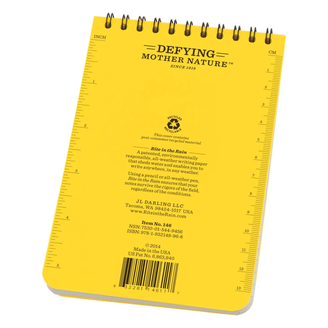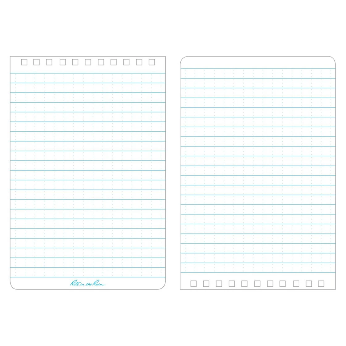 Das All-Weather Notebook von Rite in the Rain passt in jede Tasche und ist zäh genug um alle Kapriolen von Mutter Natur zu überleben. Dieses Notebook zeigt sich unbeeindruckt von Schweiß, Regen, Matsch, Schnee, Öl, Fett und dem Verschleiß bei täglichem Gebrauch. Es kann mit allen Stiften und Schreibern darauf geschrieben werden, außer mit wasserbasierender Tinte. Im Einband sind umfangreiche Umrechnungstabellen für Maße und Gewichte sowie Maßskalen in Inch und cm. Mit Drahtbindung und widerstandsfähigem PolyDura Cover.