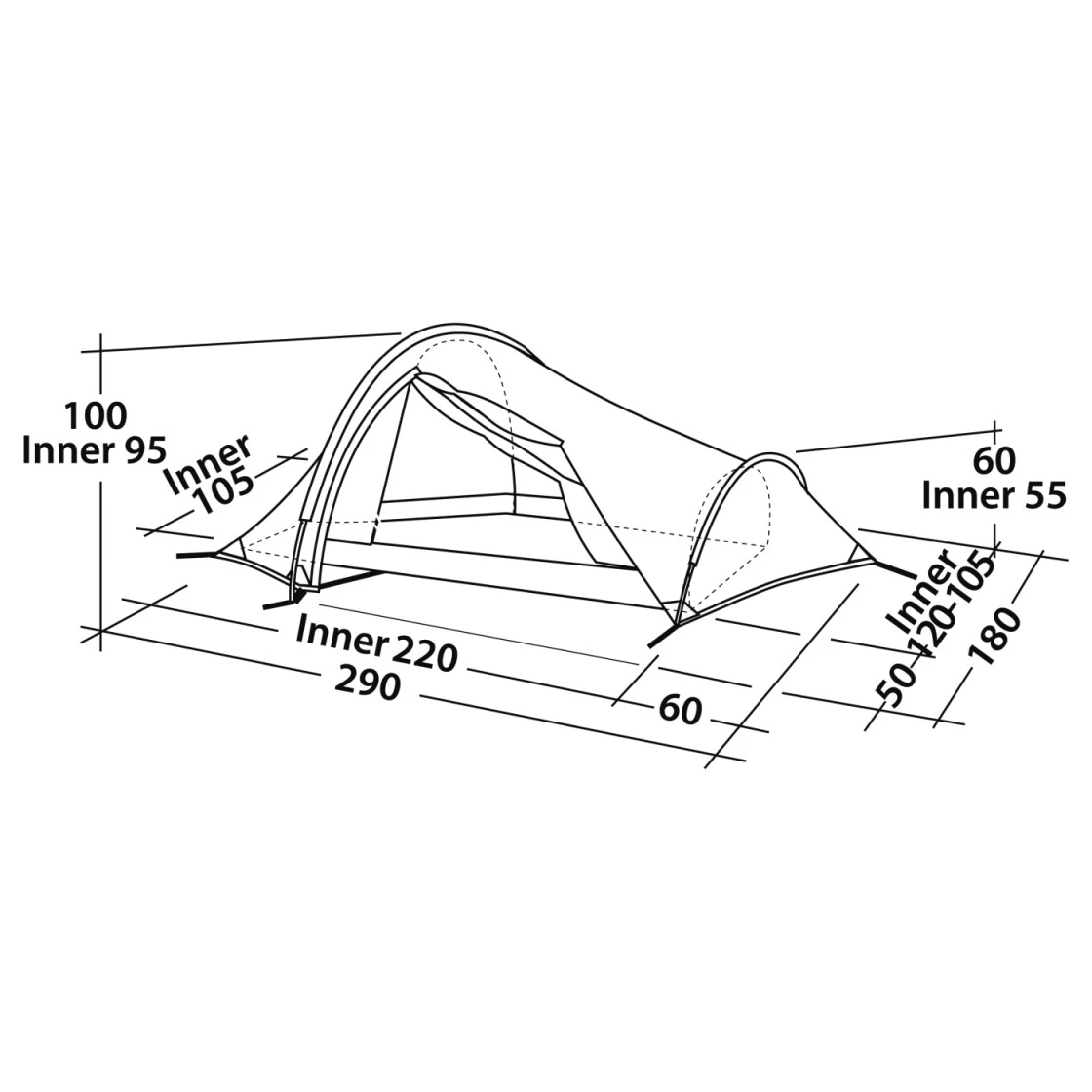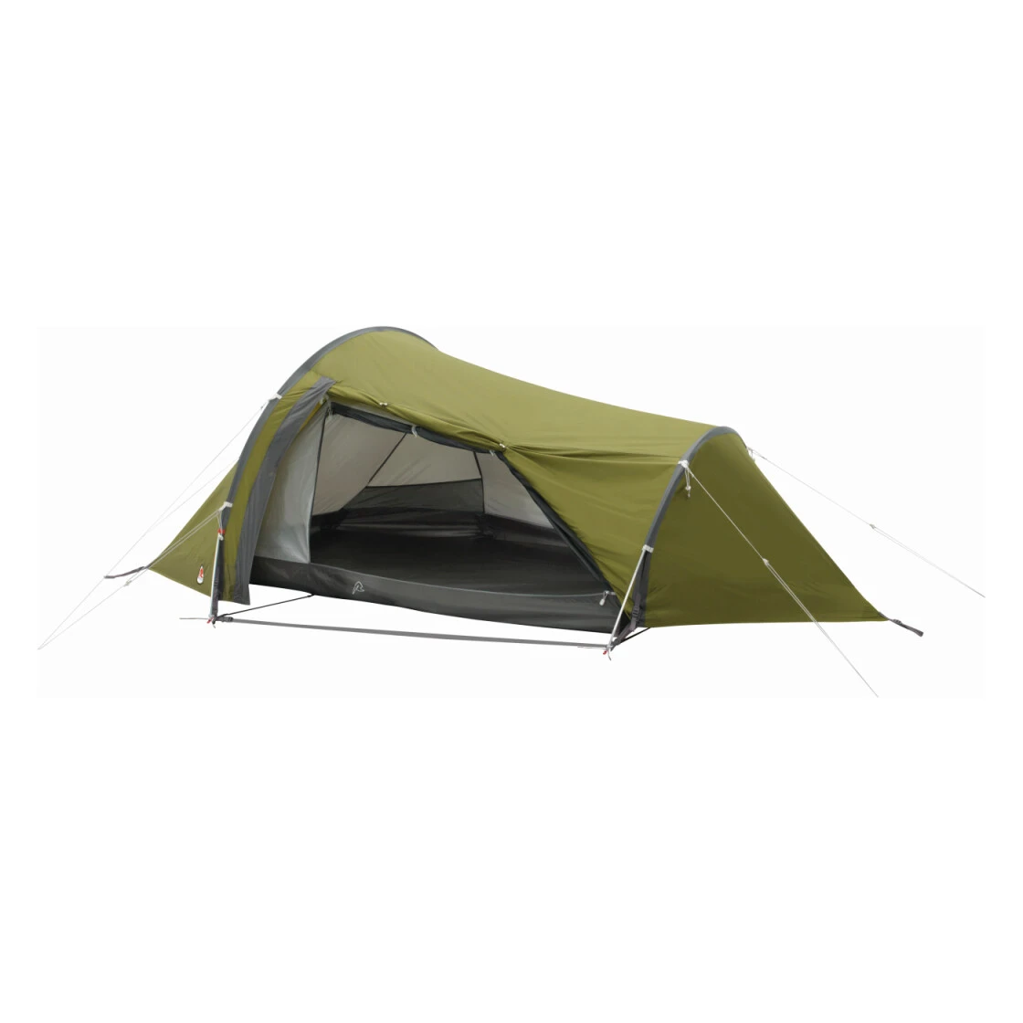 Zelt in Tunnelbauweise mit dem bewährten Side-Entry-Design für zwei Personen. Stabile Konstruktion mit einem dem Gewicht – angemessenen Schlafraum und einer Apside für Gepäck. Packmaß und Gewicht sind hier minimiert. Um mehr Platz für Ausrüstung zu schaffen, kann das Innenzelt auch beiseitegeschoben werden. Am Fußende gibt es einen zusätzlichen, kleinen Stauraum. Netztaschen und Aufhängeseil für Ausrüstung sind enthalten.
